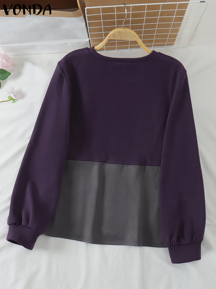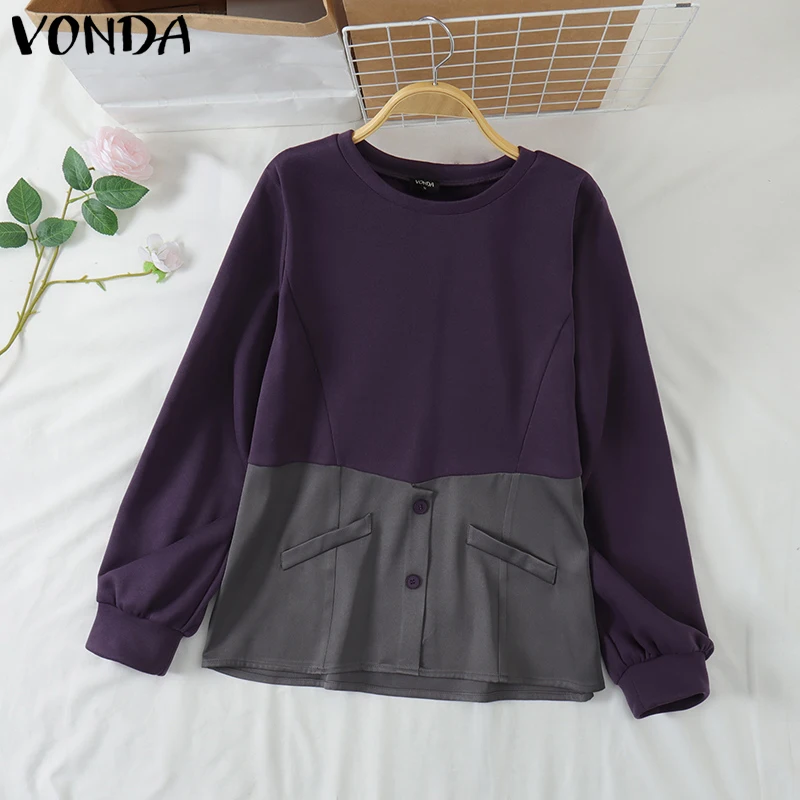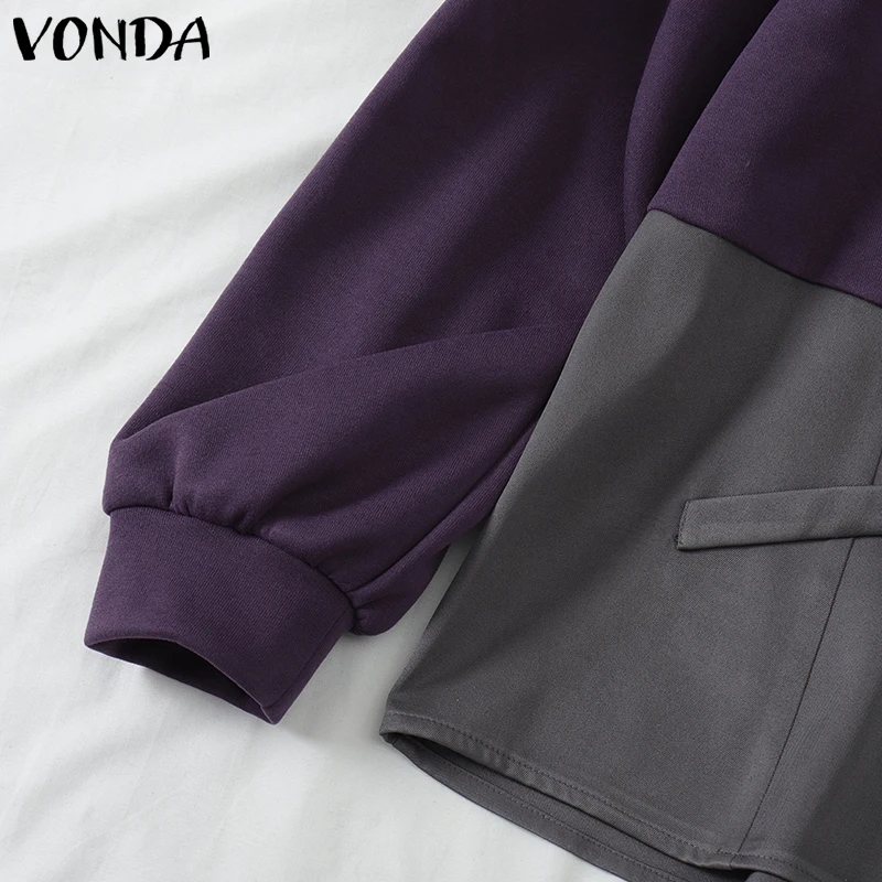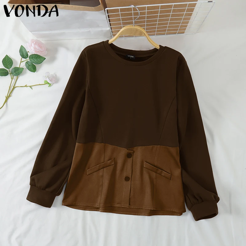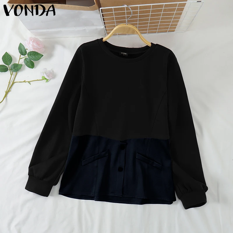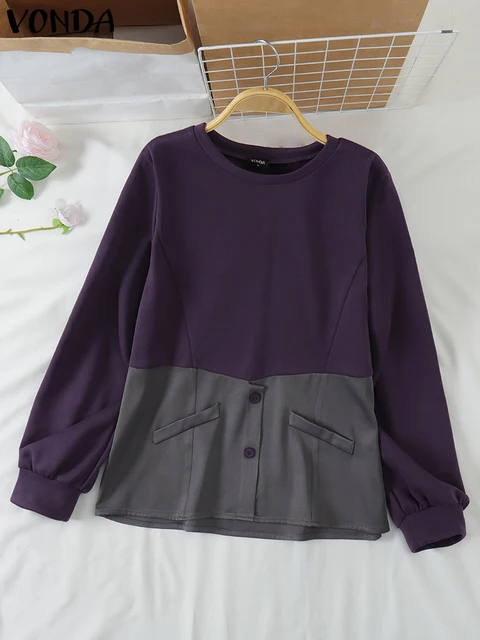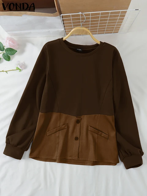 Features:Crew-neck patchwork color button-up long-sleeved hoodie
