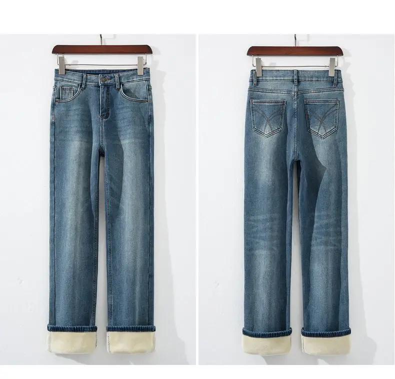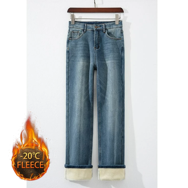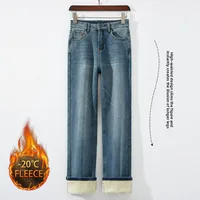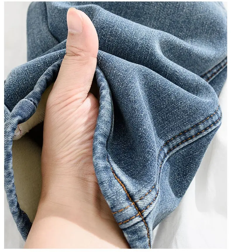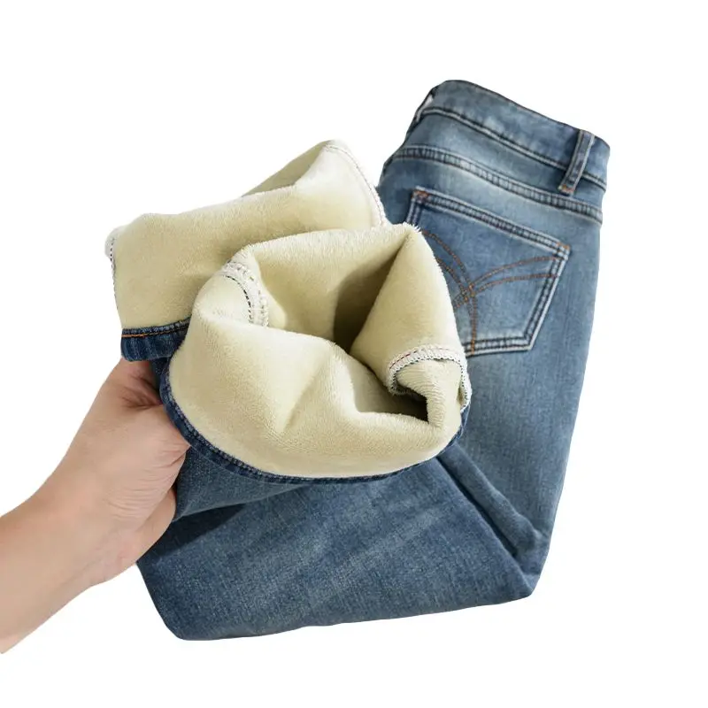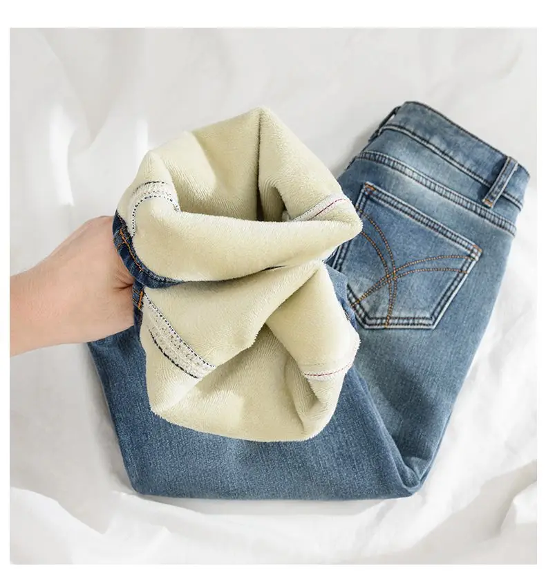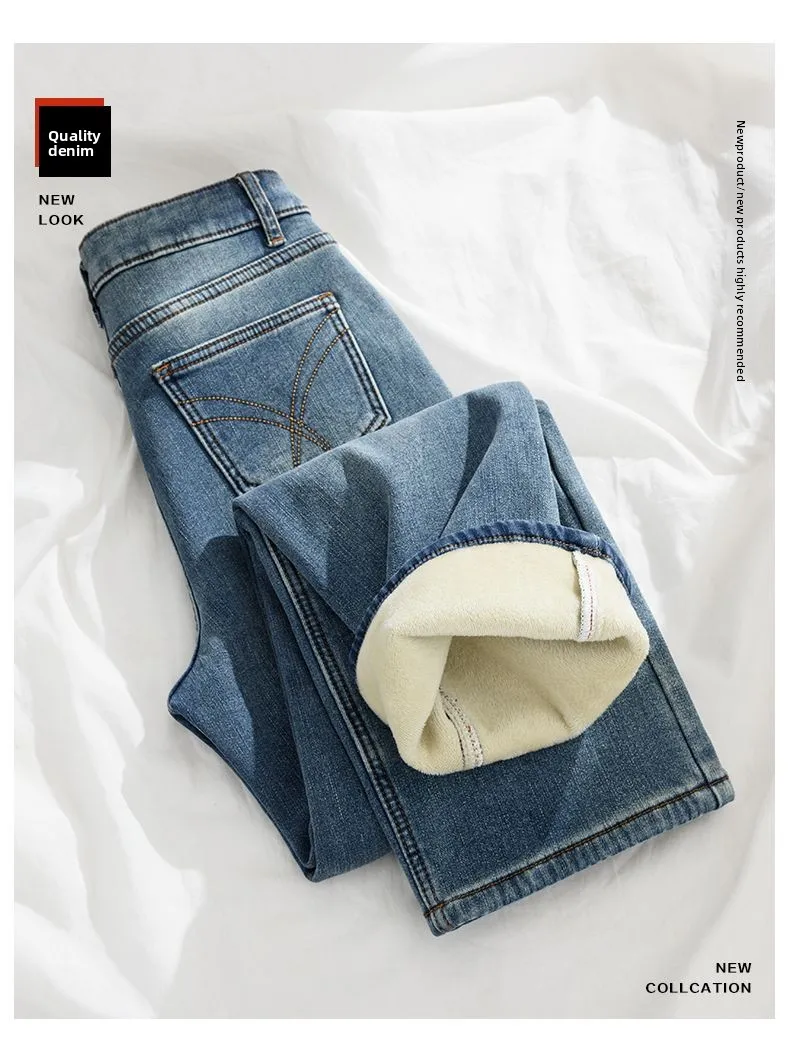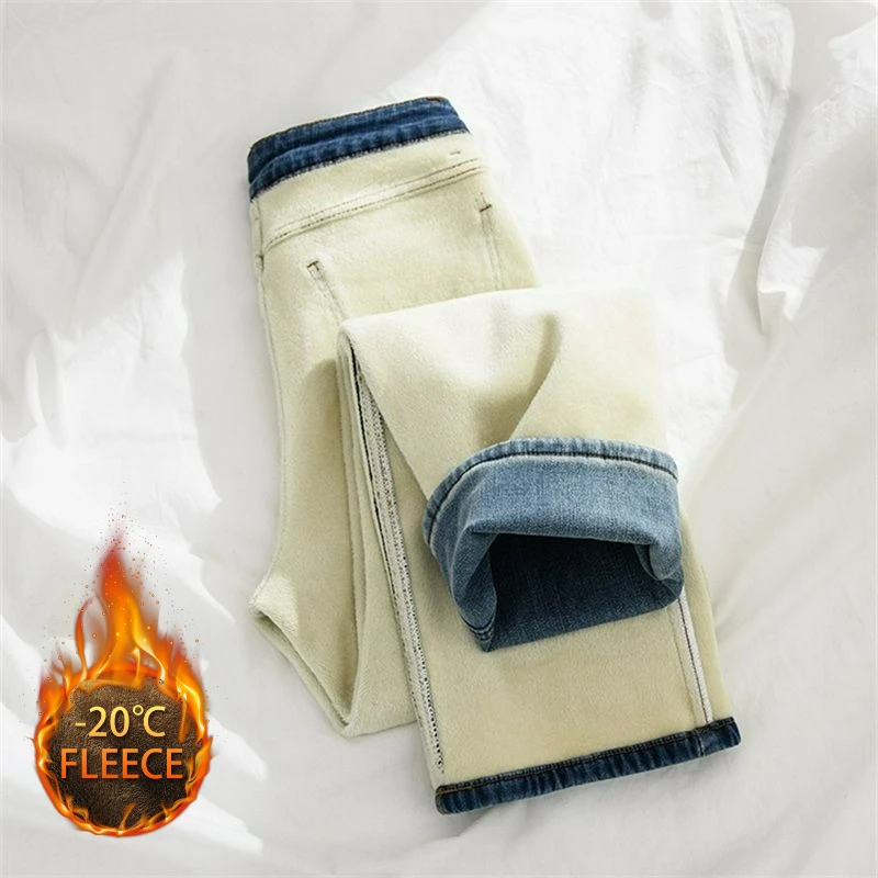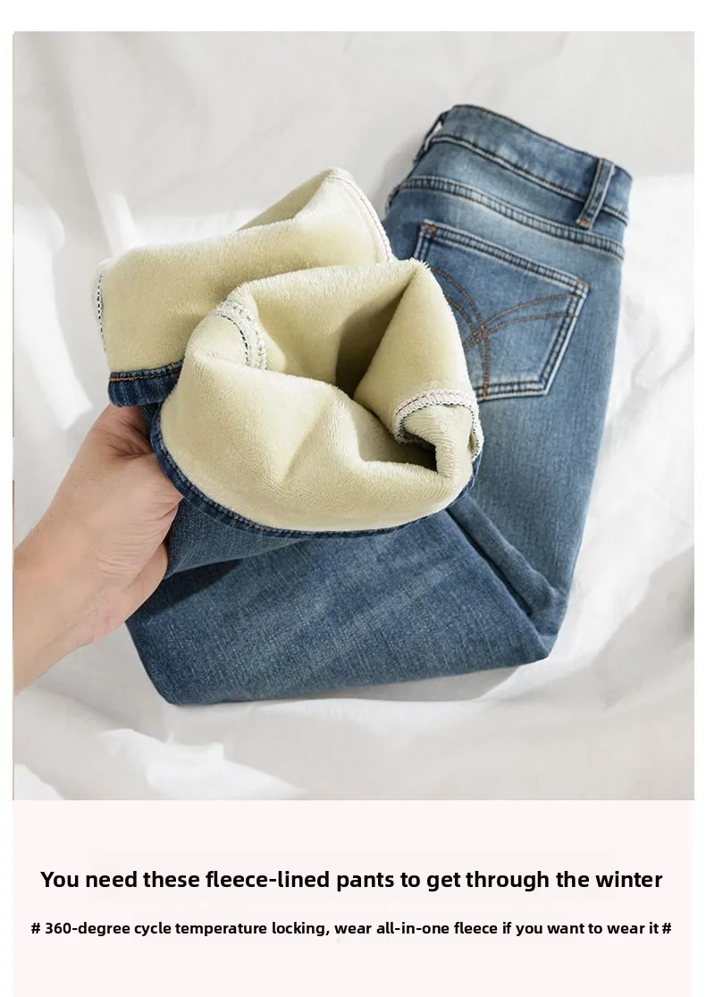 Women Thermal Y2K Jeans Autumn Winter Thickened Fleece Stretch Skinny Pencil Pants Fashion Korean High