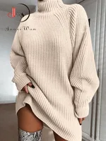 Women Turtleneck Sweater Dress Autumn Solid Long Sleeve Casual Elegant Mini Oversized Knitted Dress Winter Clothes