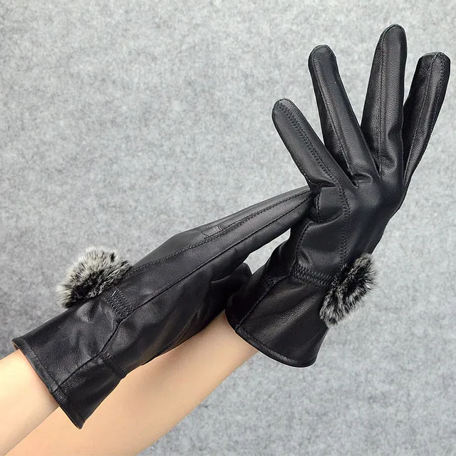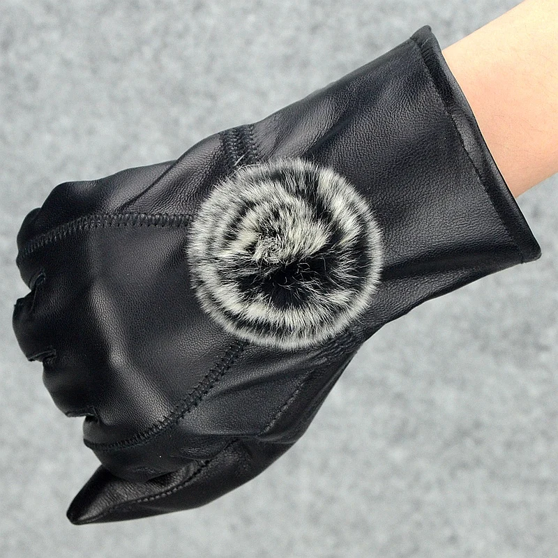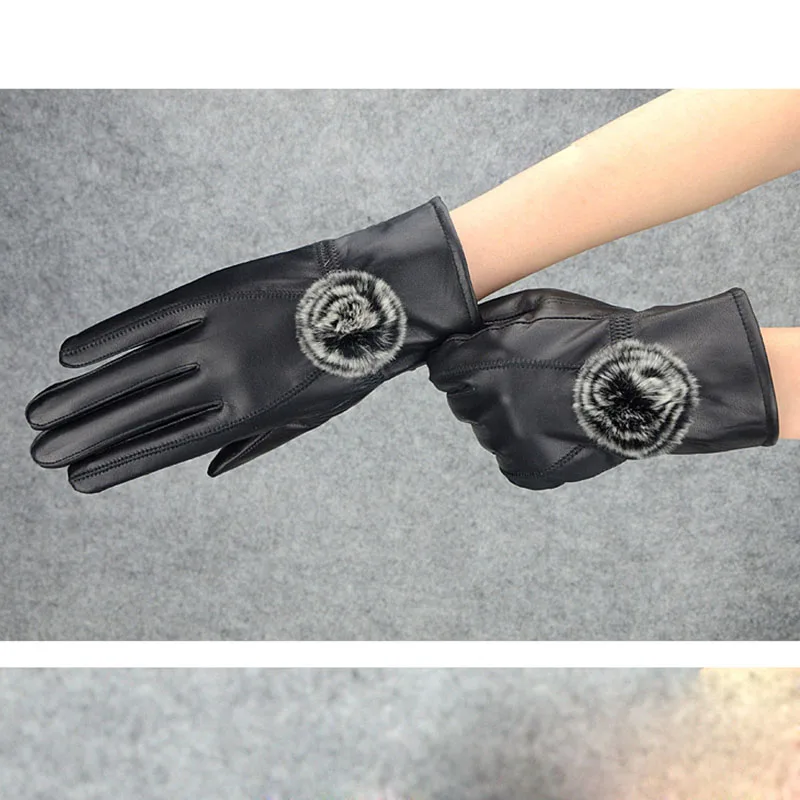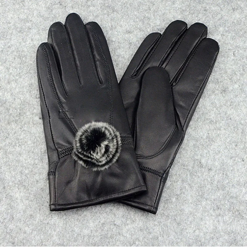 Women Winter Genuine Leather Gloves With wool lined Warm Ladies 2019 Thick Real Leather Glove Black Female New 2018 Hot Selling