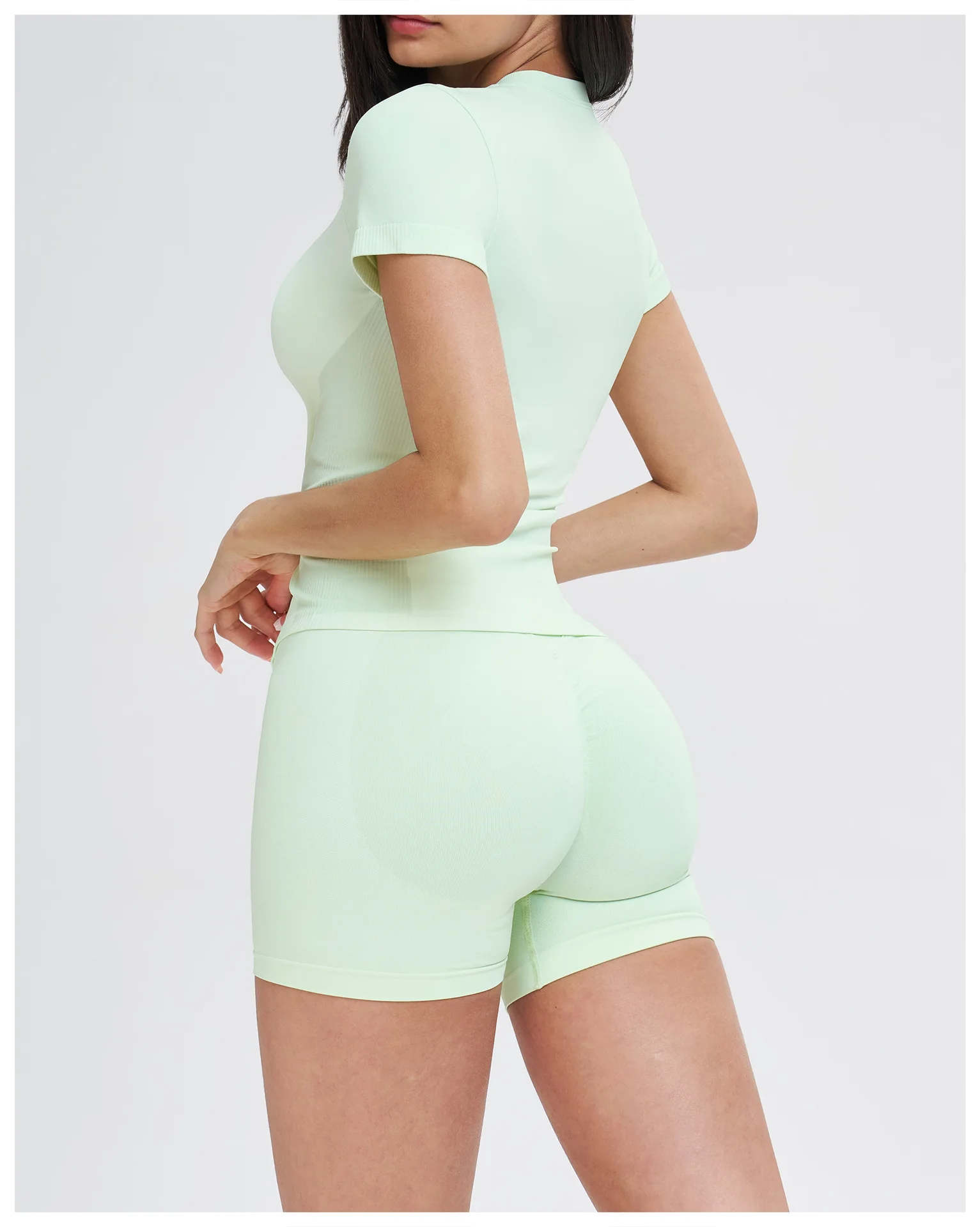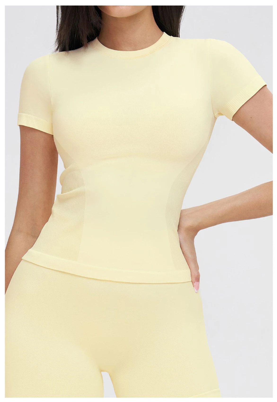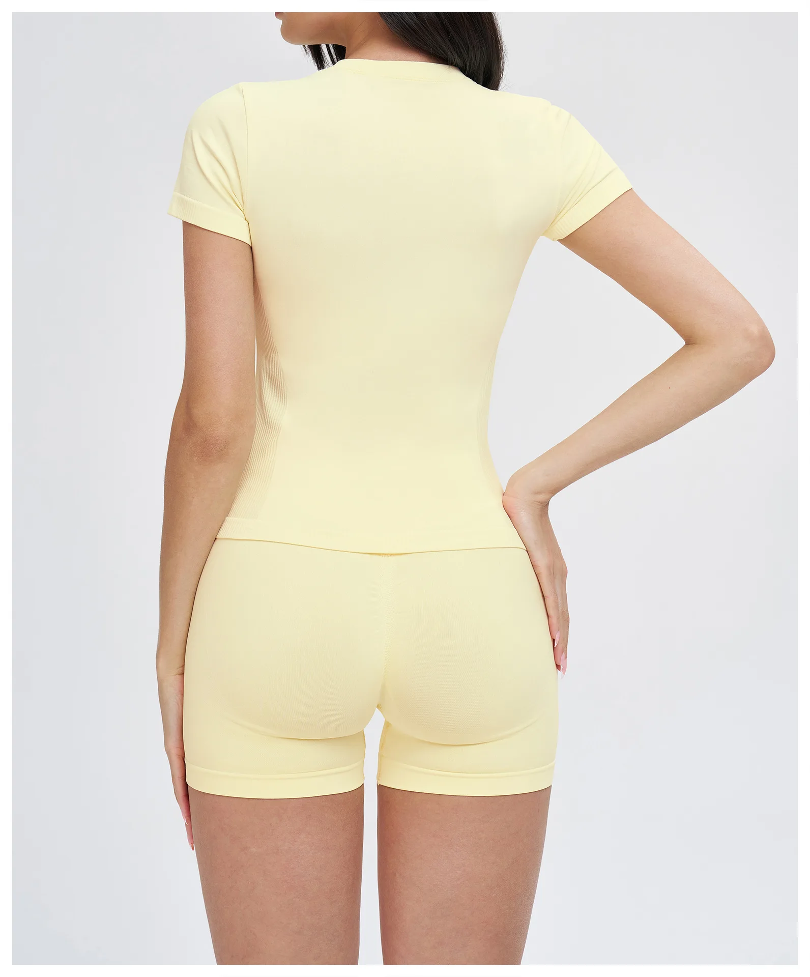 Women Yoga Top Seamless Short Sleeved Sport T Shirts Fitness Clothes Sports Short Sleeve Yoga Shirt Gym Top Running Active Wear