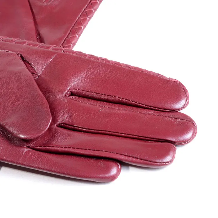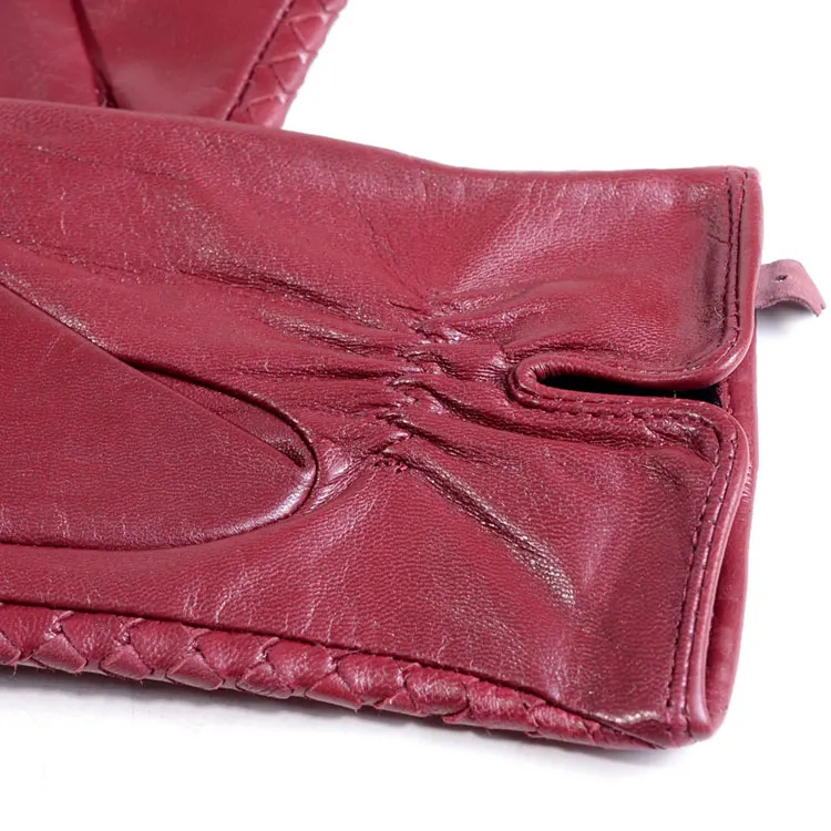 Women's 100% Real Leather Winter Warm Elegant Woven Design Lambskin Goatskin Classical Driving Riding Touch Screen Short Gloves