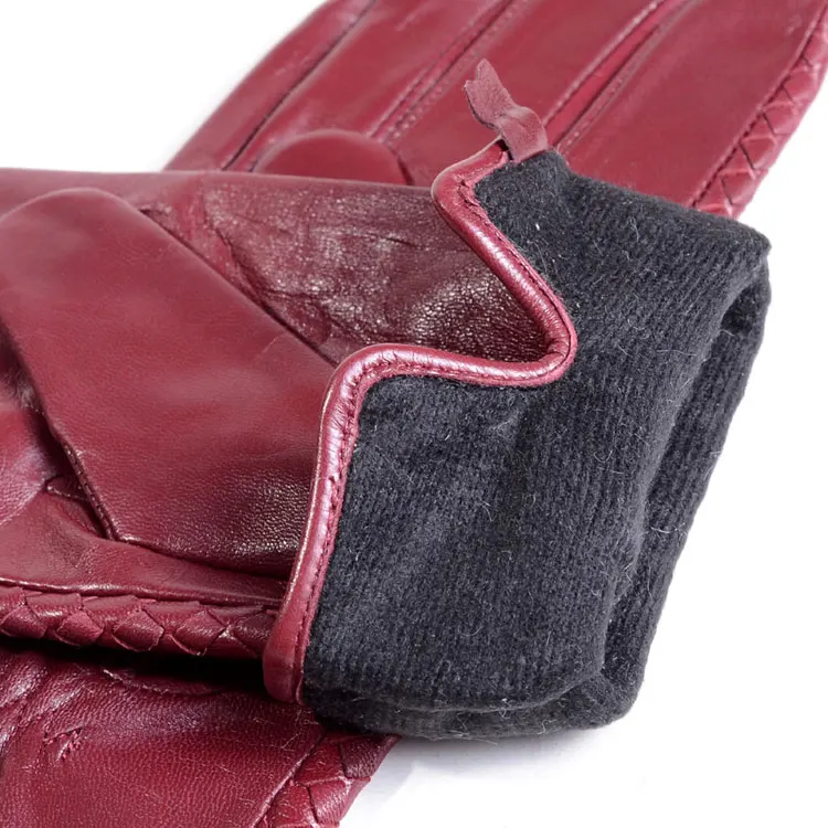 Women’s 100% Real Leather Winter Warm Elegant Woven Design Lambskin Goatskin Classical Driving