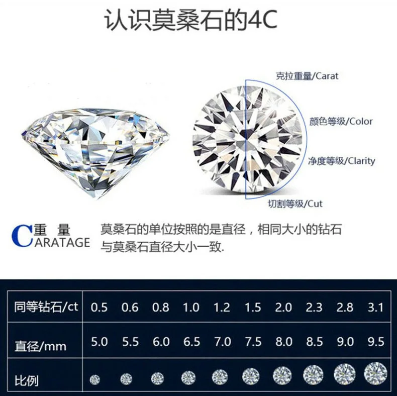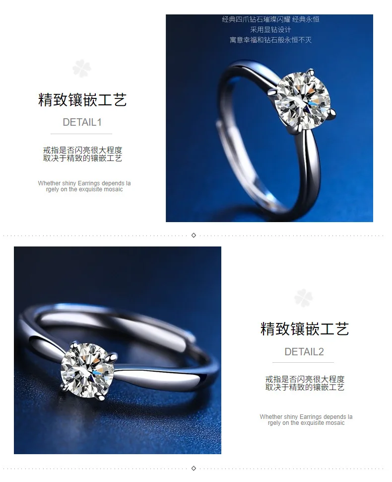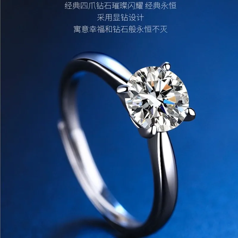Women's 1ct Moissanite Hearts And Arrows Four-Prong Ring PT950 Platinum Classic Daily Wear Jewelry