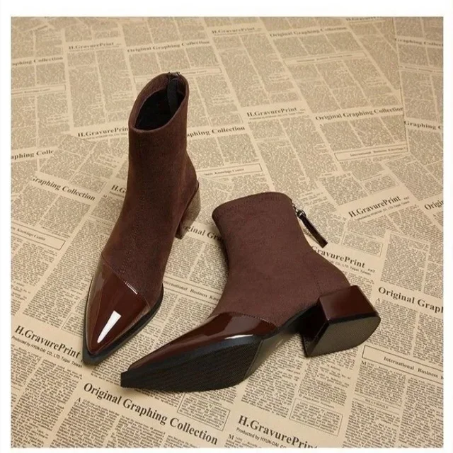 Women’s 2025 New Autumn and Winter Fashion Retro Pointed Ankle Boots with French Temperament High