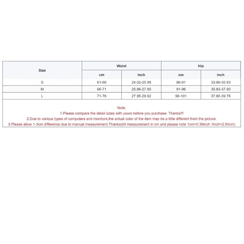 Size:S Waist:61-66cm(24.02-25.98inch) Hip:86-91cm(33.86-35.83inch)
