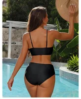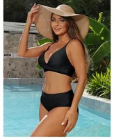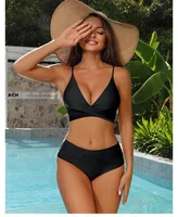 Women’s Bikini Swimsuits Two Piece Tummy Control Bathing Suit V Neck Twist Front Swim Suits
