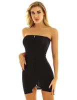 Womens Lingerie Strapless Double-ended Zipper Tube Dress Erotic Sheer Babydoll Stretchy Bodycon Mini Dress Nightwear Sleepwear