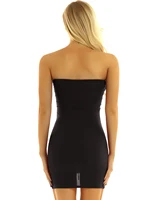 Womens Stretchy Strapless Pencil Dress Semi See-through Mini Dresses.