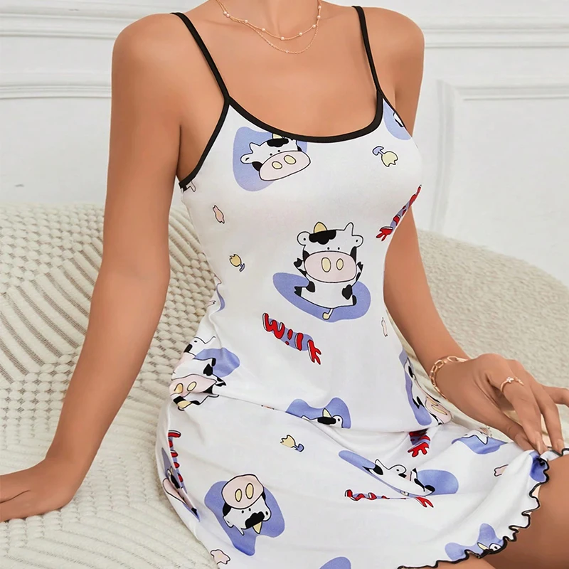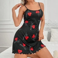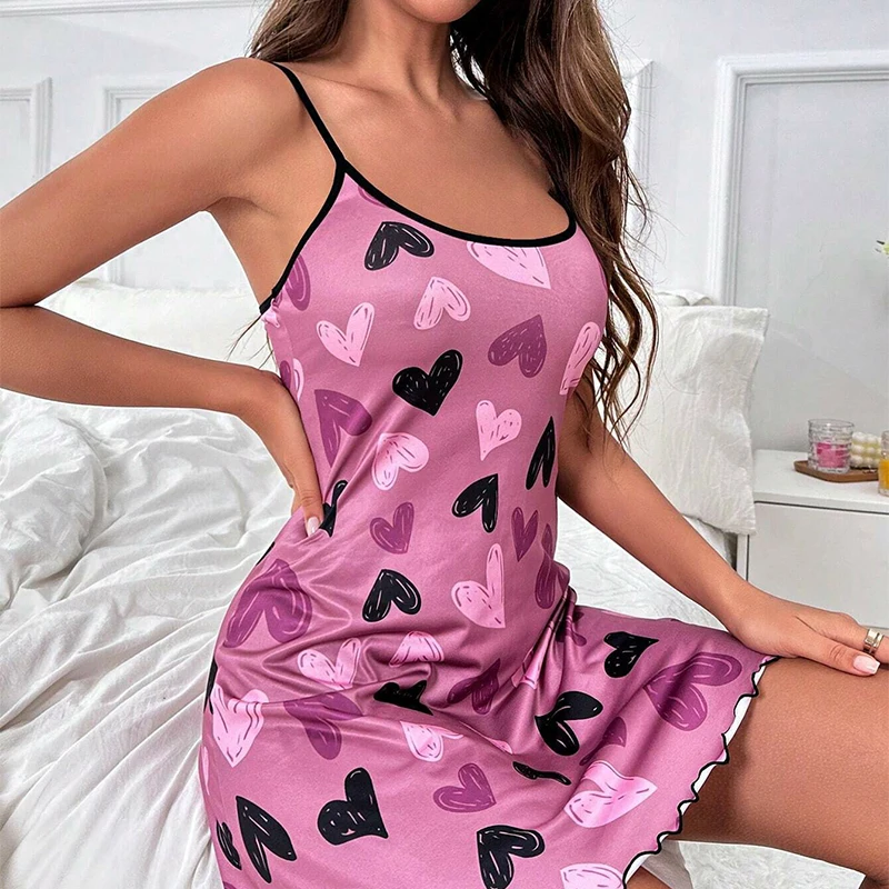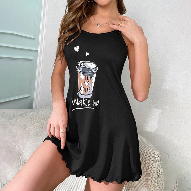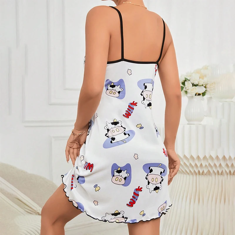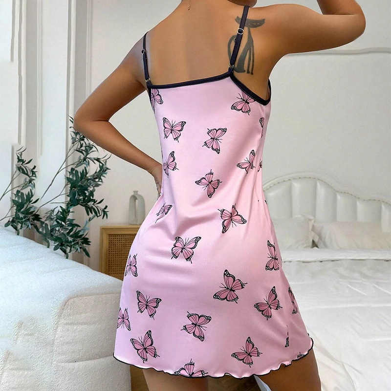Original price was: 29.18$.20.42$Current price is: 20.42$.Women’s Butterfly Heart Letter Print Frilled Nightdress Dress Thin Shoulder Strap Backless Suspender
