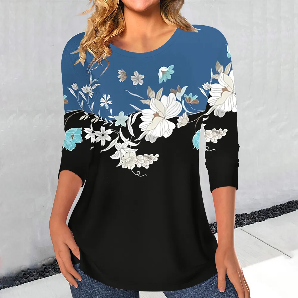 Women’s Casual Rose Print T Shirt For Women Elegant Fashion Female Clothes Streetwear Vintage Long