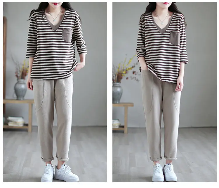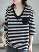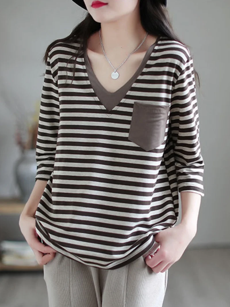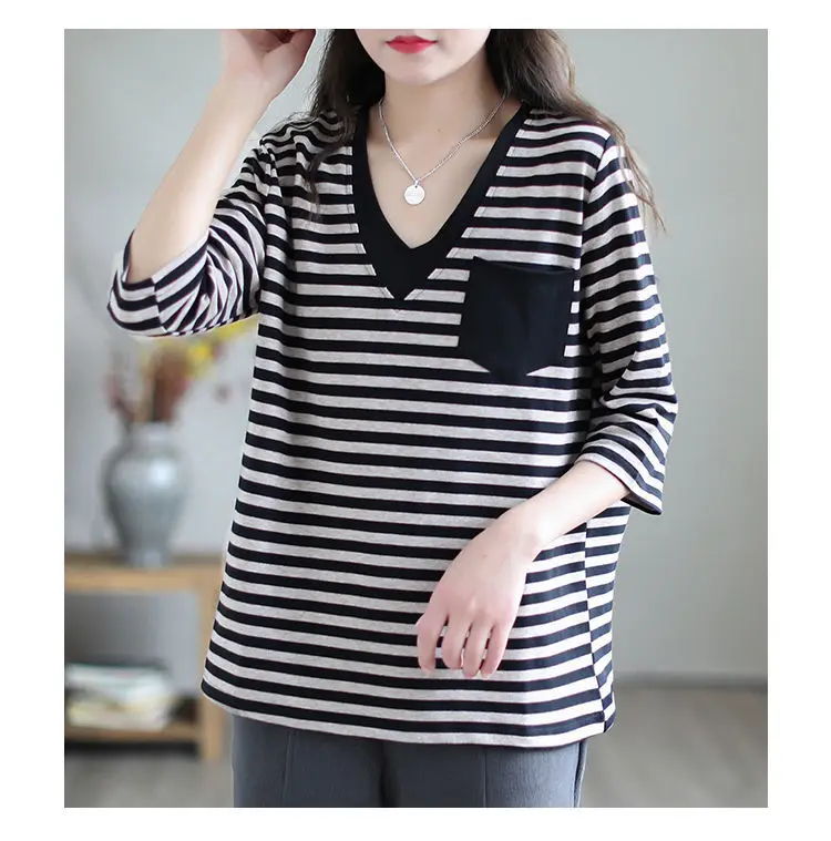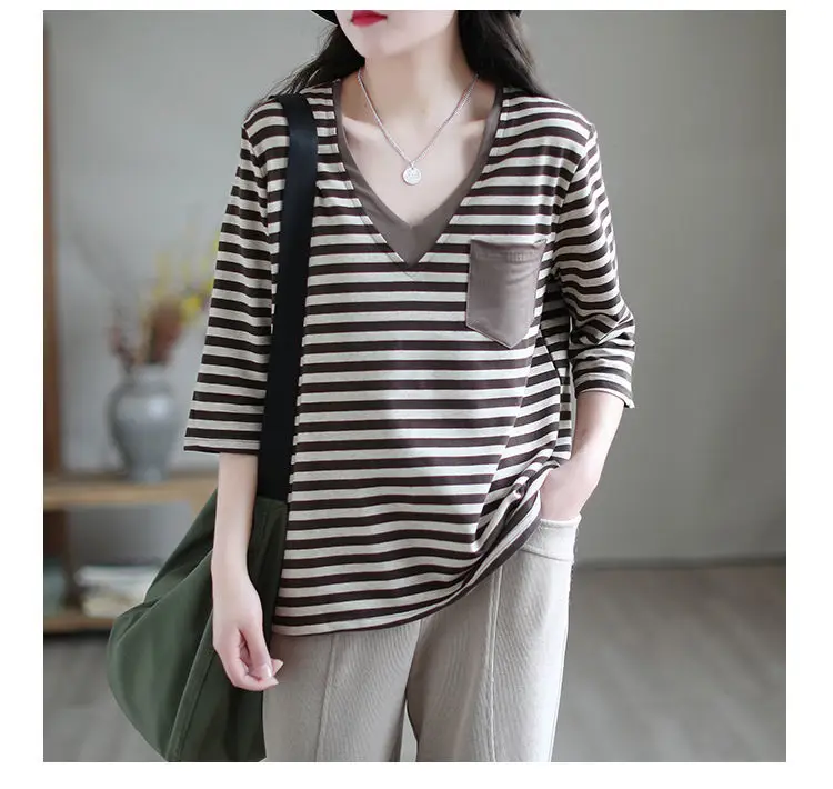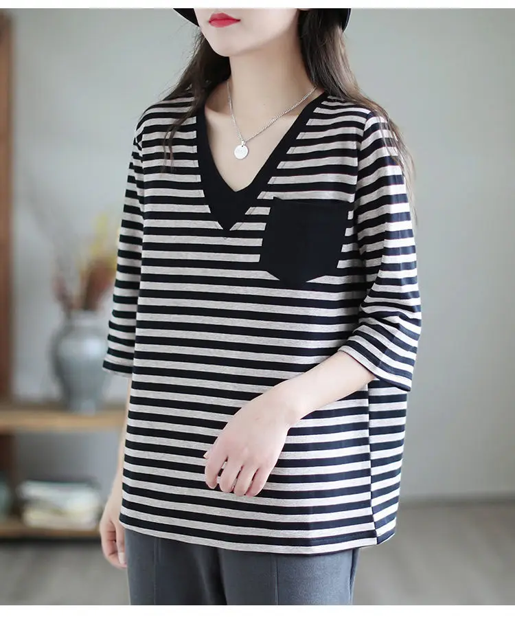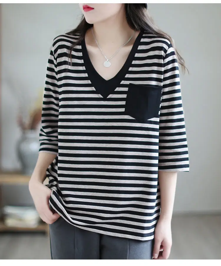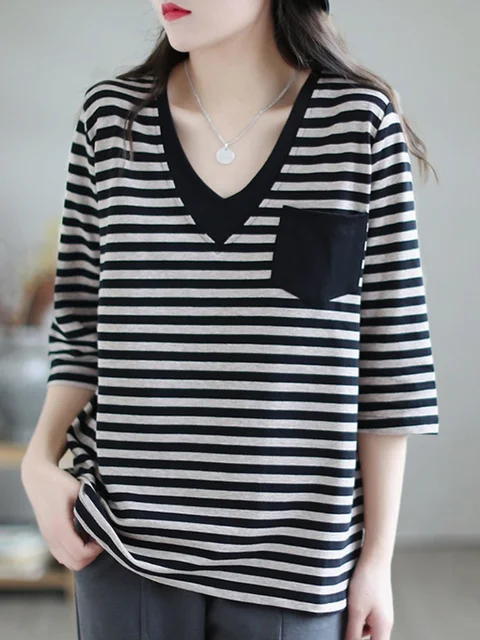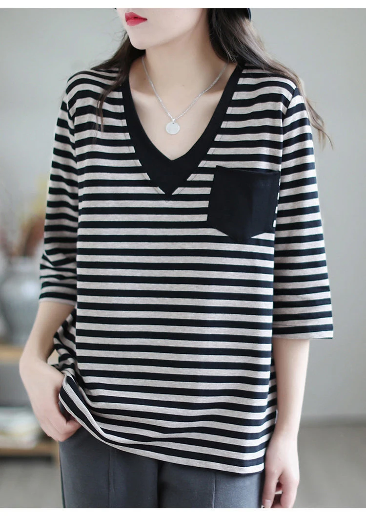 The V-neck design of this t-shirt adds a touch of elegance and sophistication, perfect for the modern woman on-the-go.