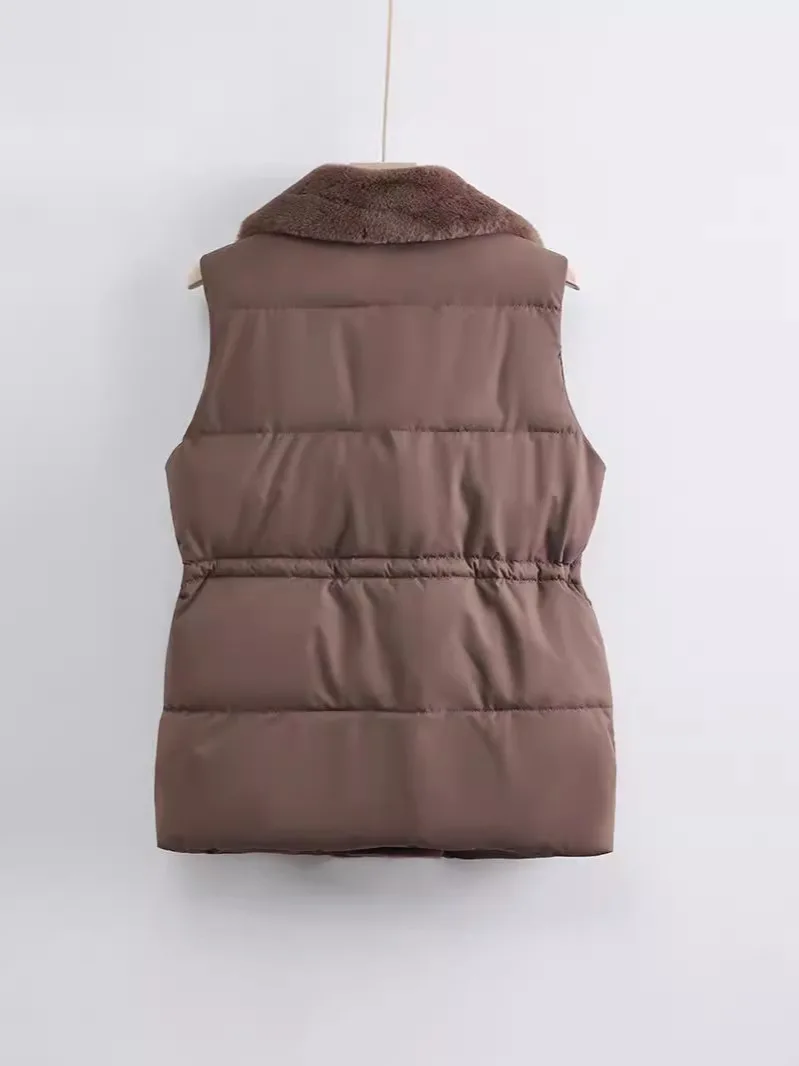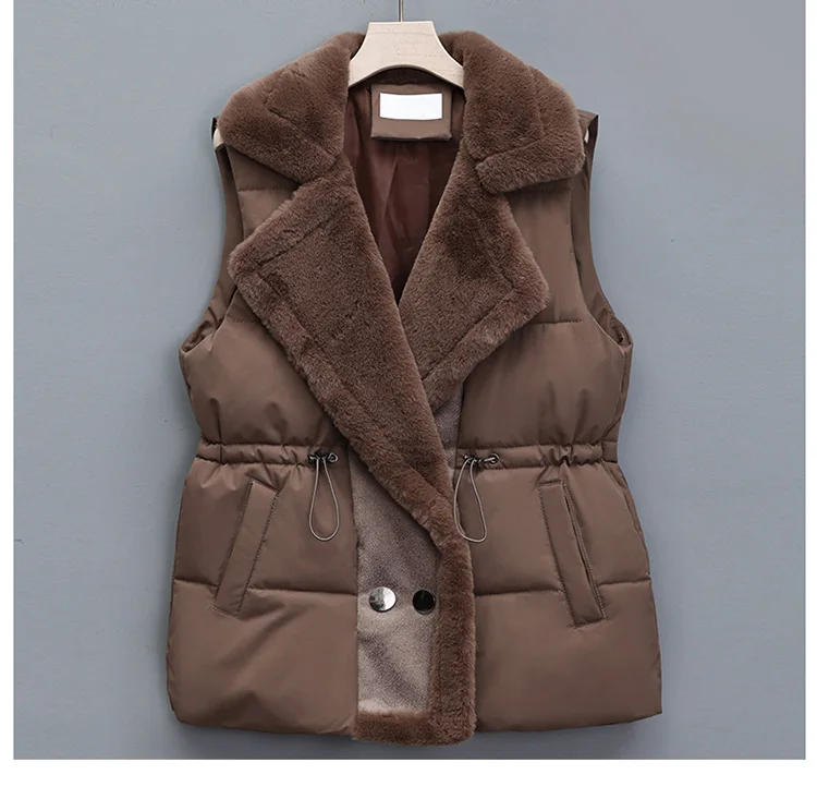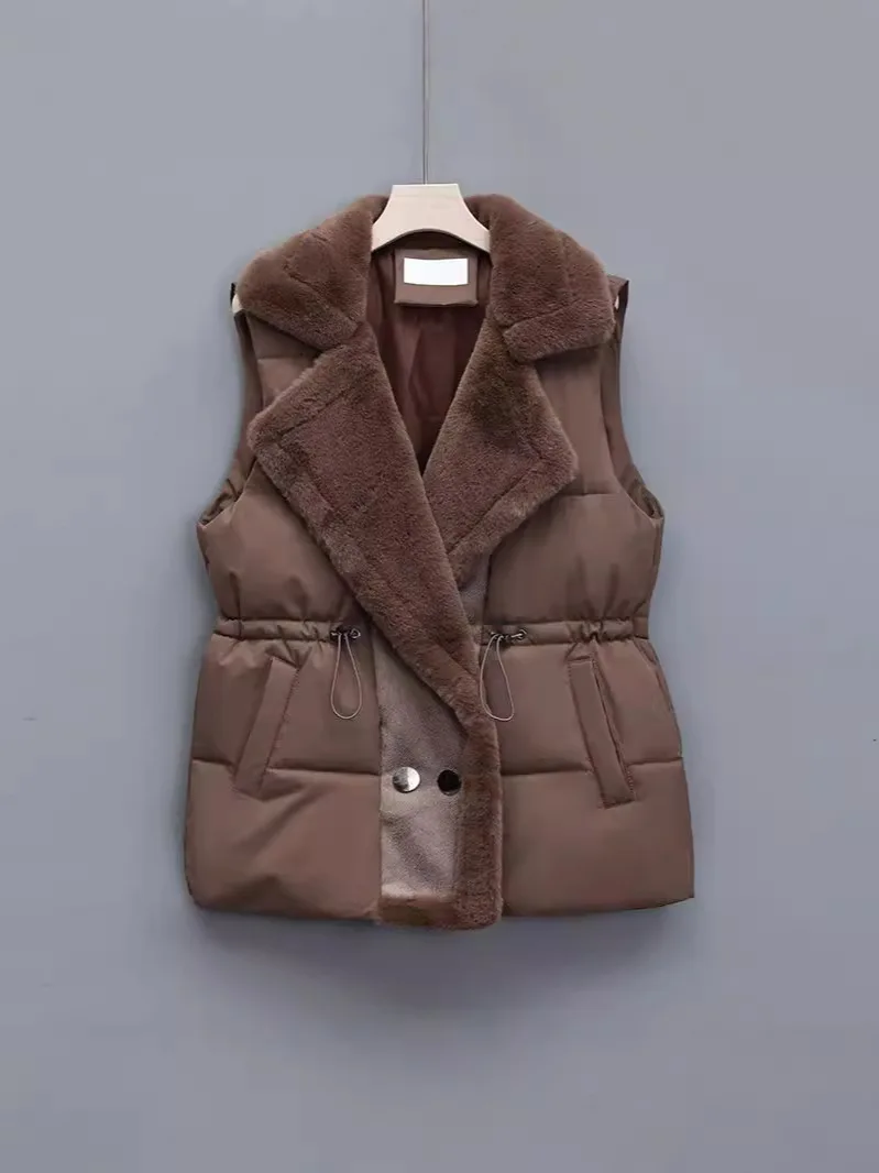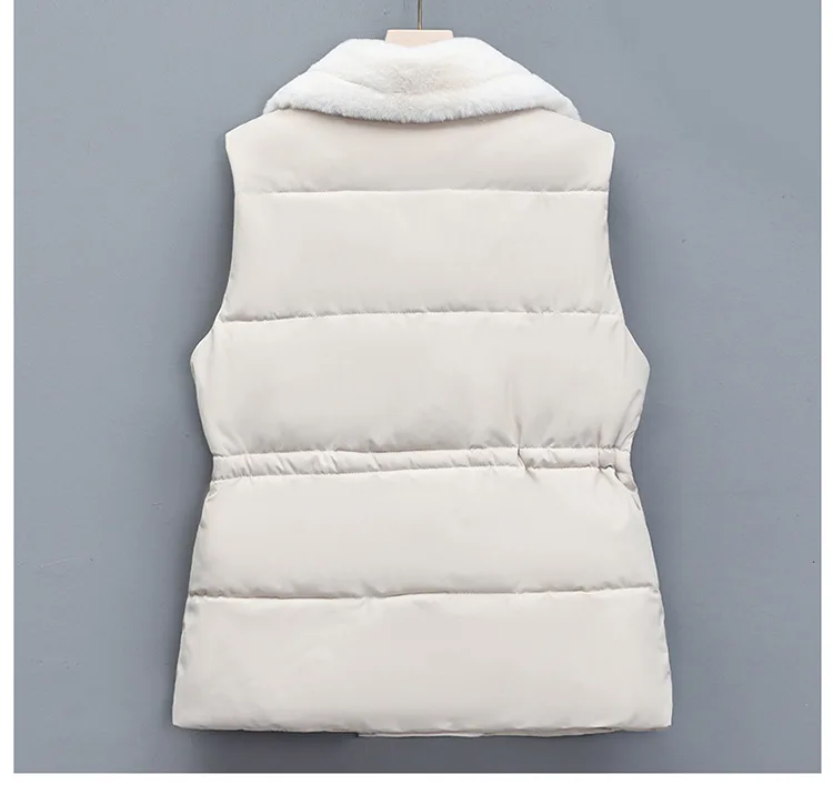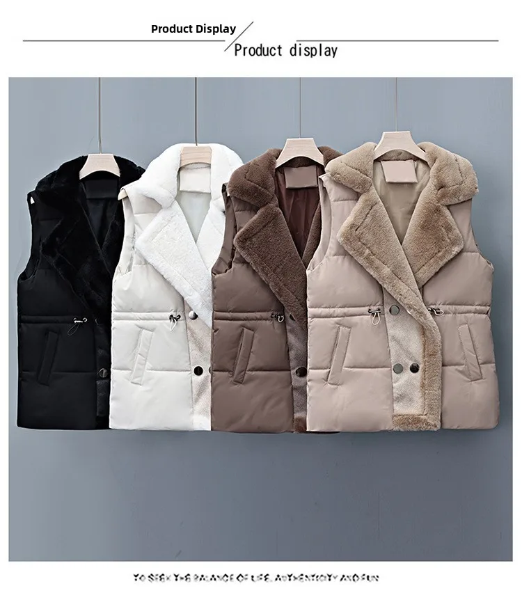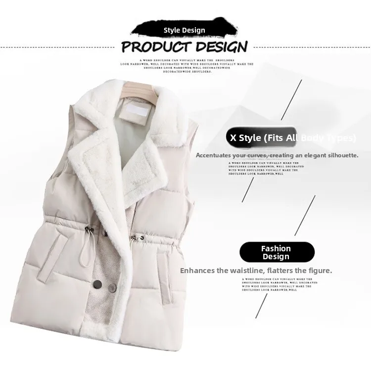 Women’s Cotton Vest Waist-Cinching Suit Collar Jacket Outerwear Autumn Winter Polyester Fiber Zipper