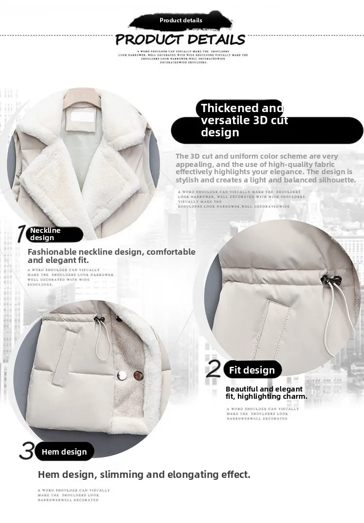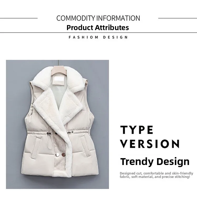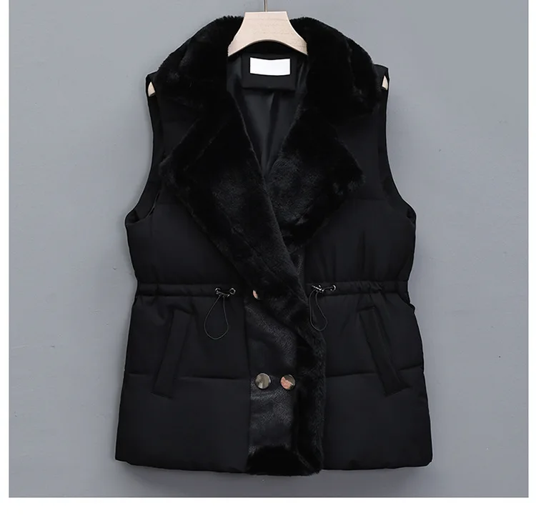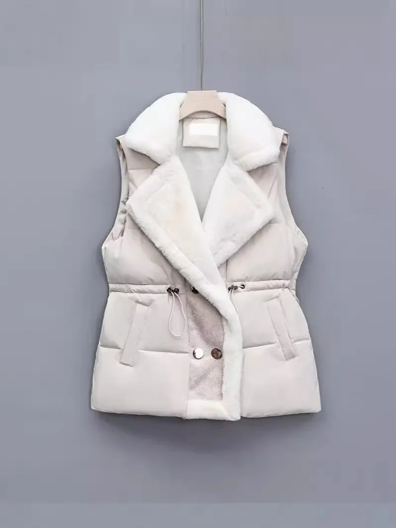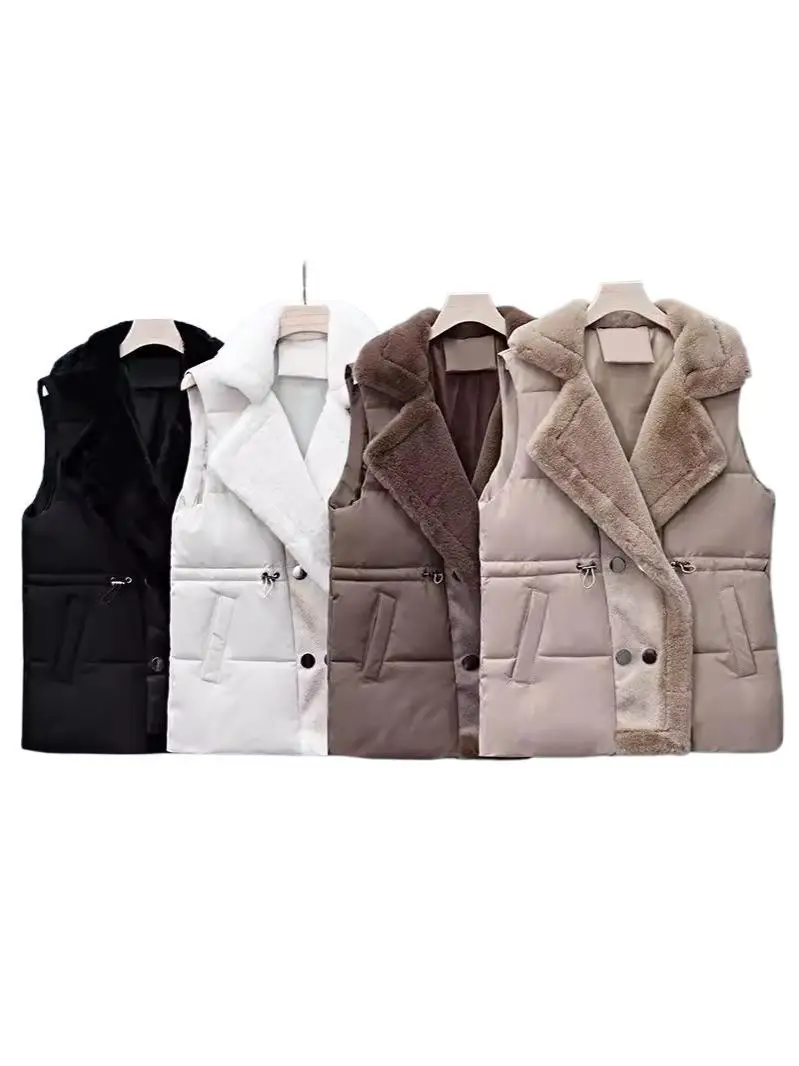Women’s Cotton Vest Waist-Cinching Suit Collar Jacket Outerwear Autumn Winter Polyester Fiber Zipper