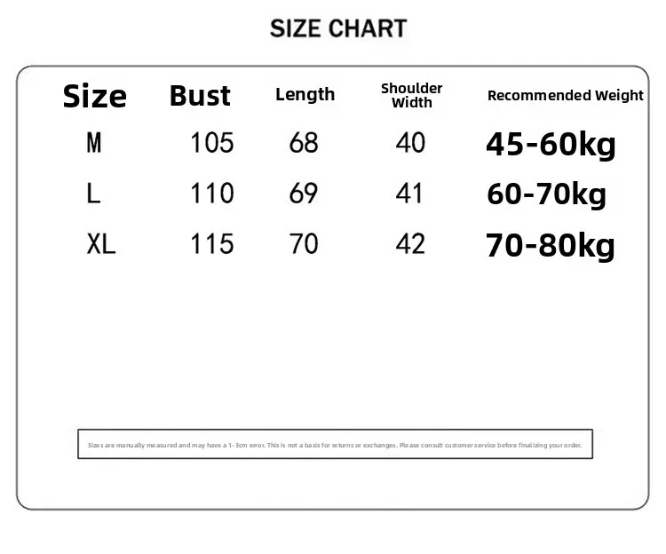 L [60.00 kg-70.00 kg]]M 45.00 kg-60.00 kgXL 70.00 kg-80.00 kg