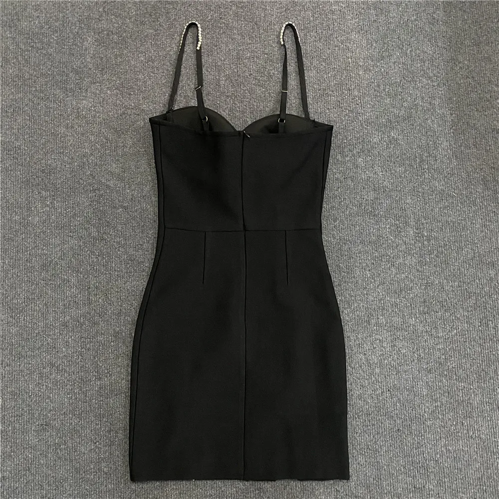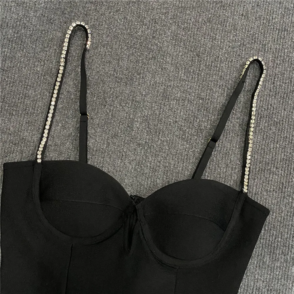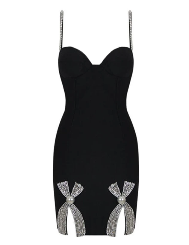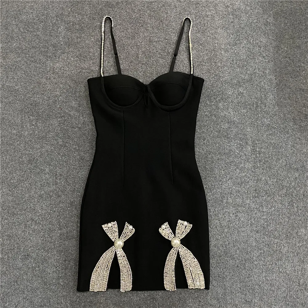 Women’s Dress Sexy Spicy Girl Sleeveless Camisole Dress Rhinestone Strap Bowknot Decor Bodycon Dress Sexy Party Dress