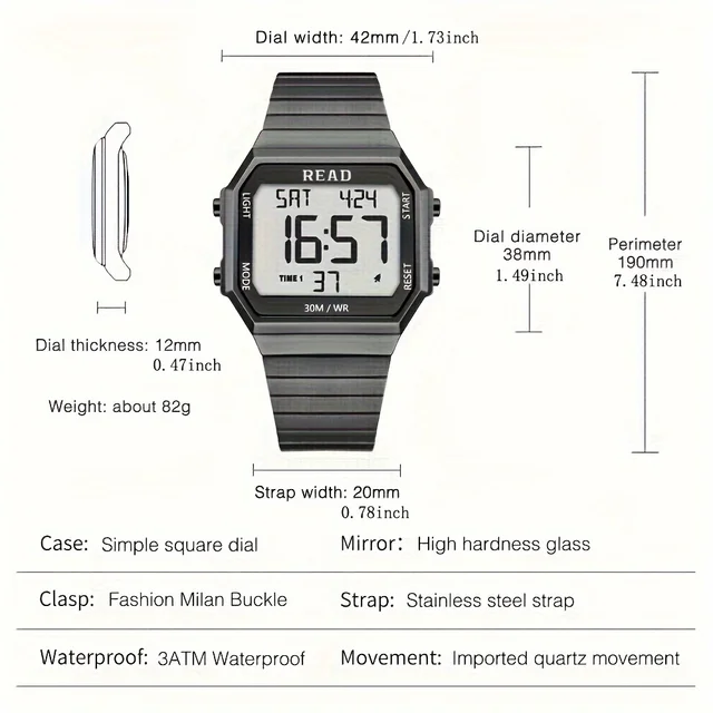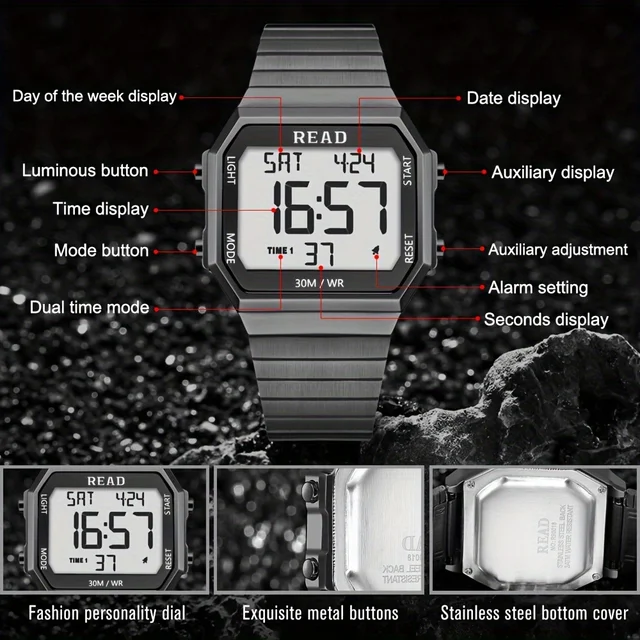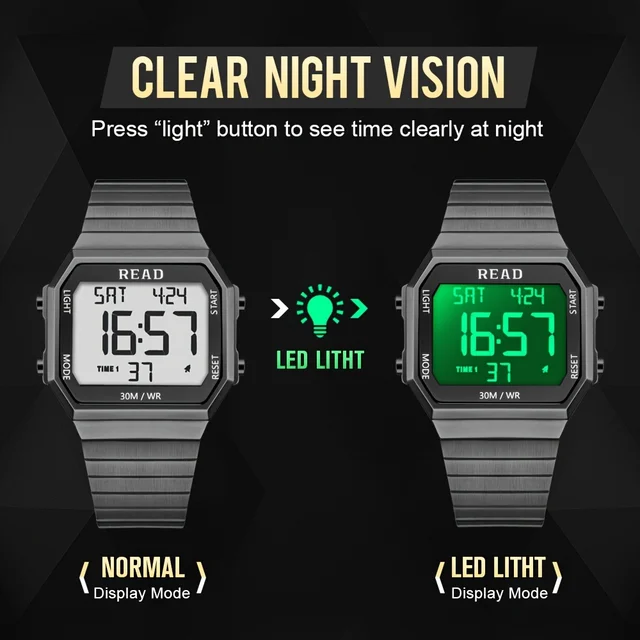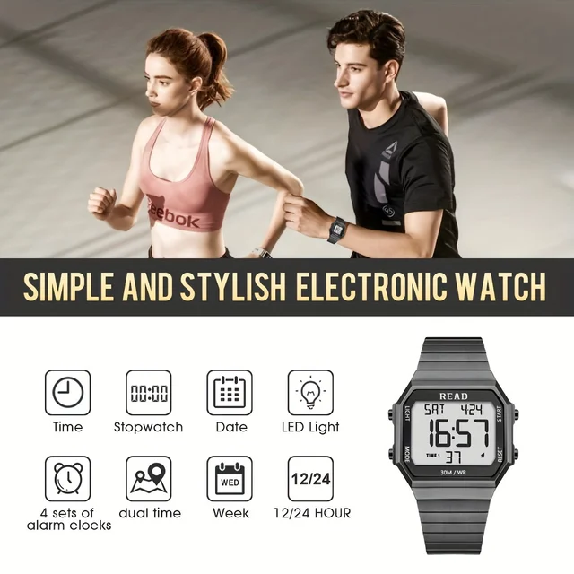 Women’s Electronic Sports Watch Waterproof 30M Dual Time Alarm Stopwatch Night Light Week Calendar