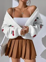 Women’s Embroidered Cardigan, Fashionable, Low Shoulder, Cherry Pattern, Loose Jacket, Commuter