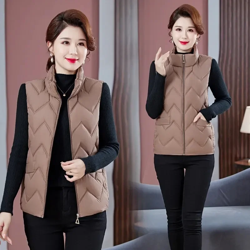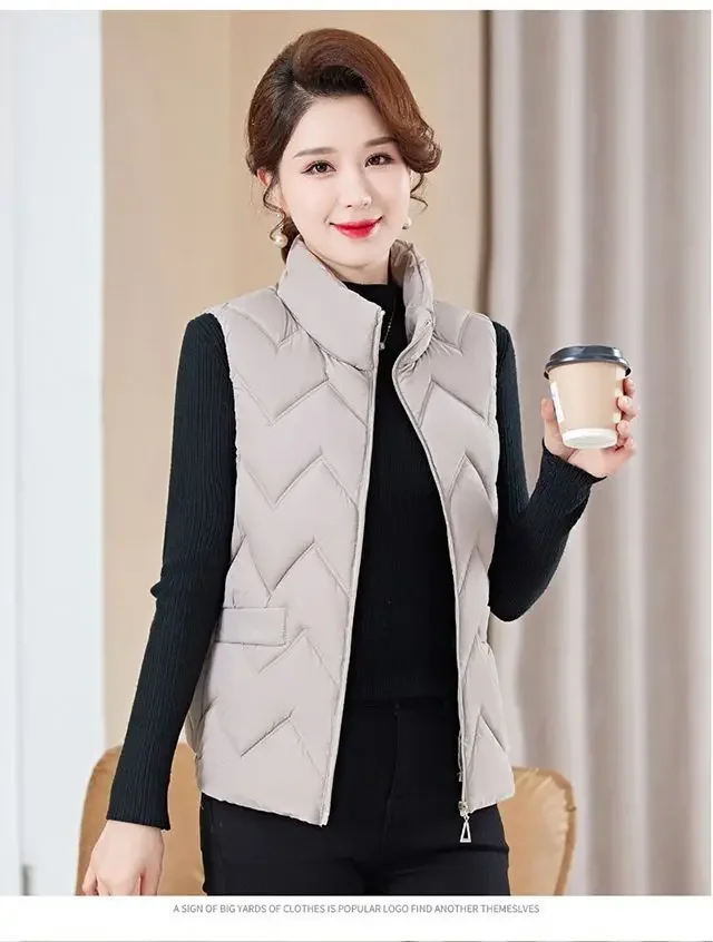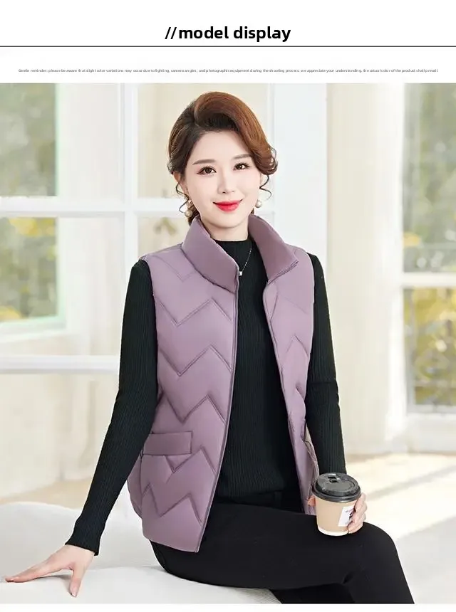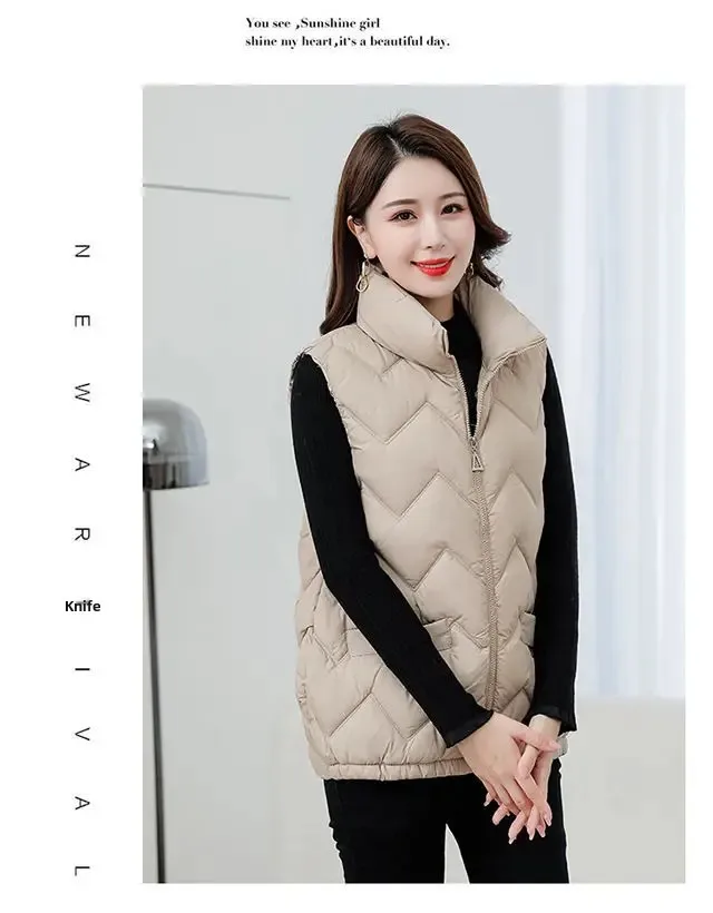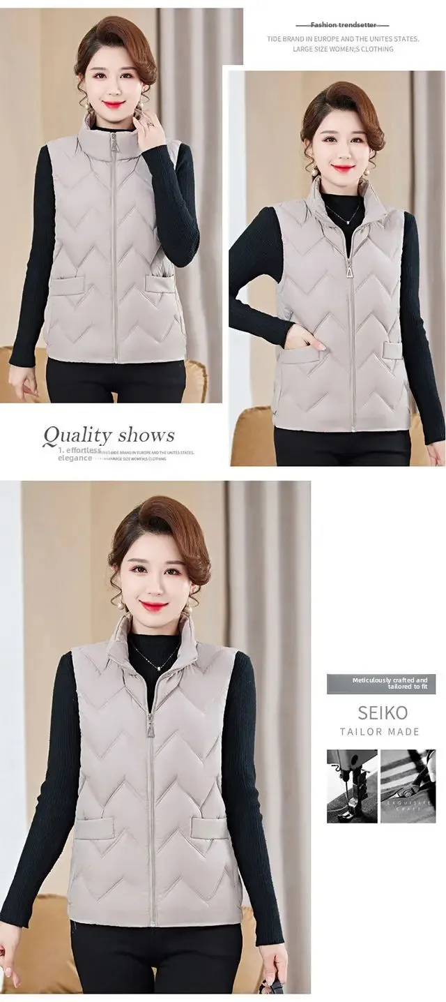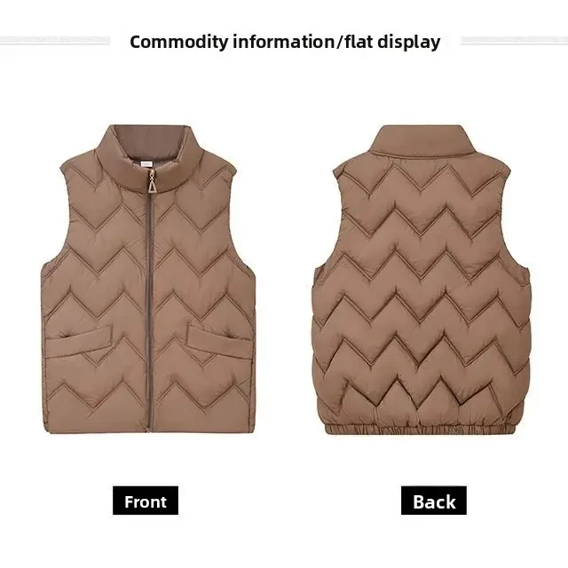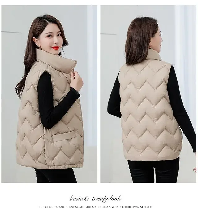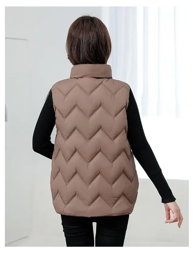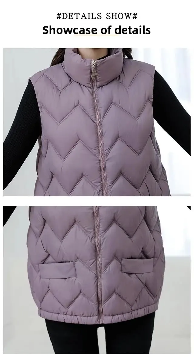 Women's Fashionable Lightweight down Cotton Vest Autumn Winter Casual Style Sleeveless Pure Color Warm Shoulder Pad Jacket