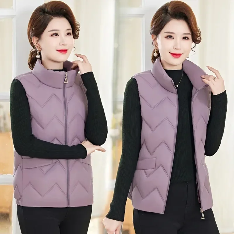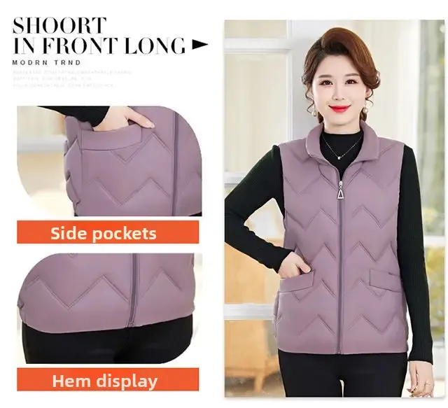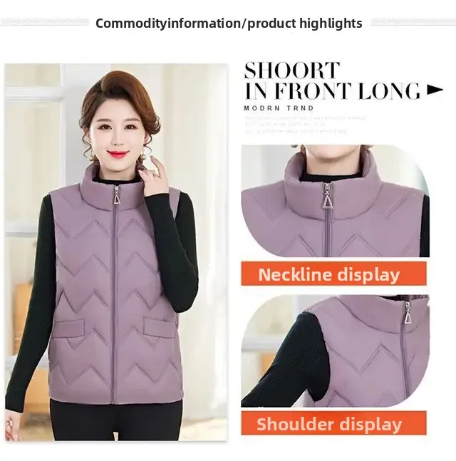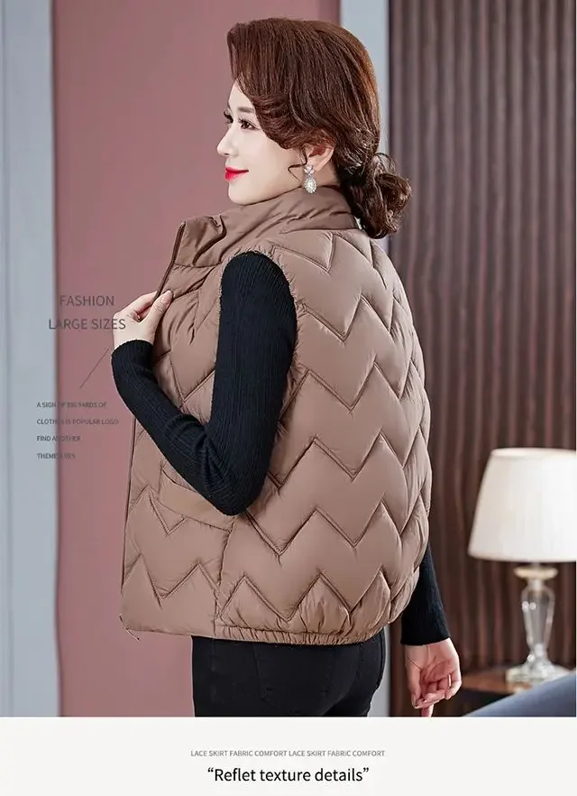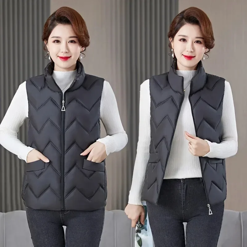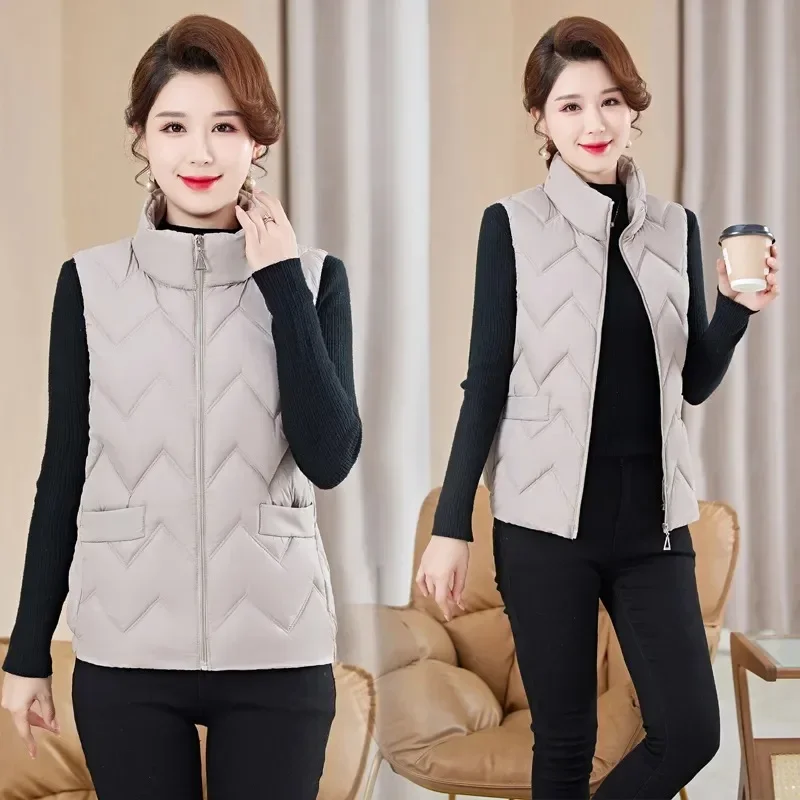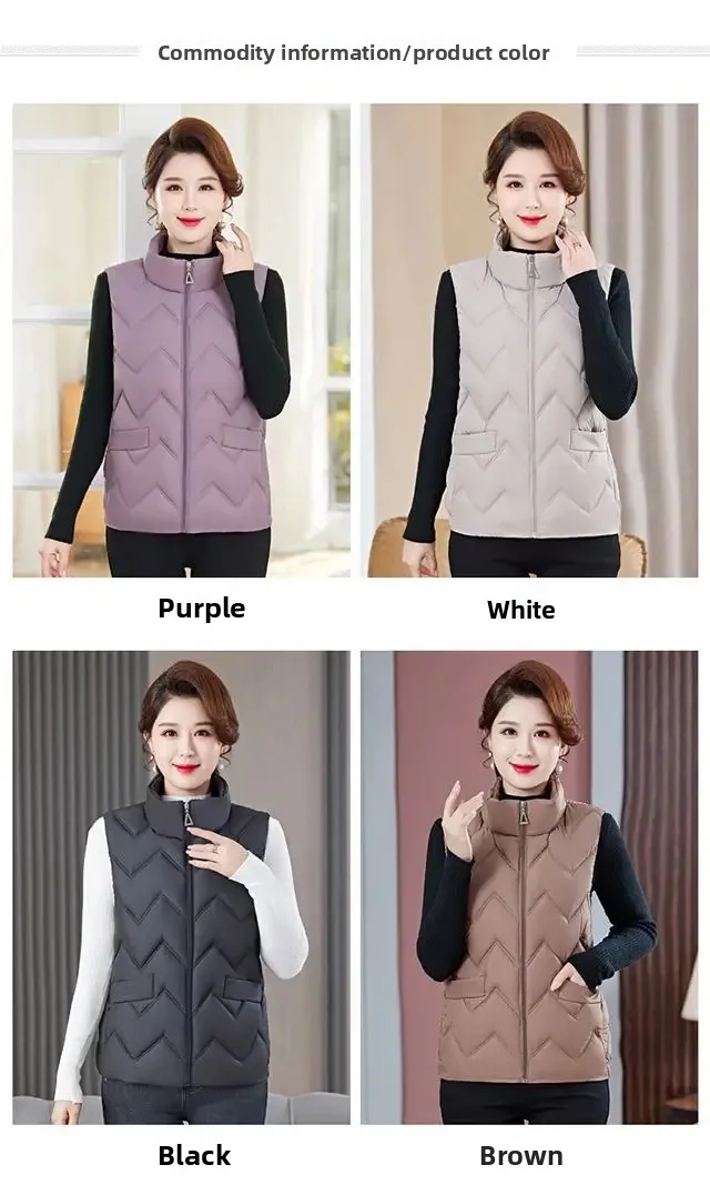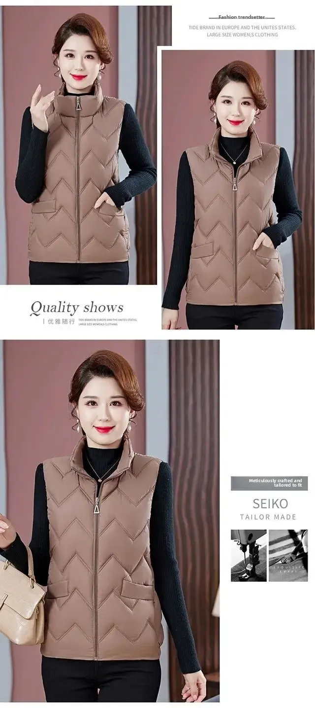 Women's Fashionable Lightweight down Cotton Vest Autumn Winter Casual Style Sleeveless Pure Color Warm Shoulder Pad Jacket
