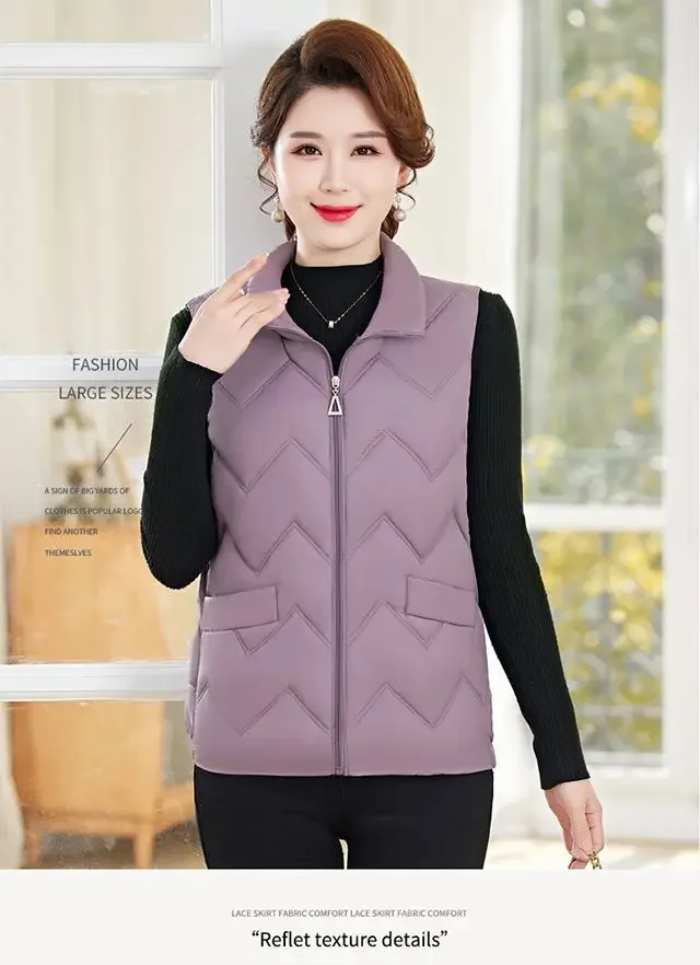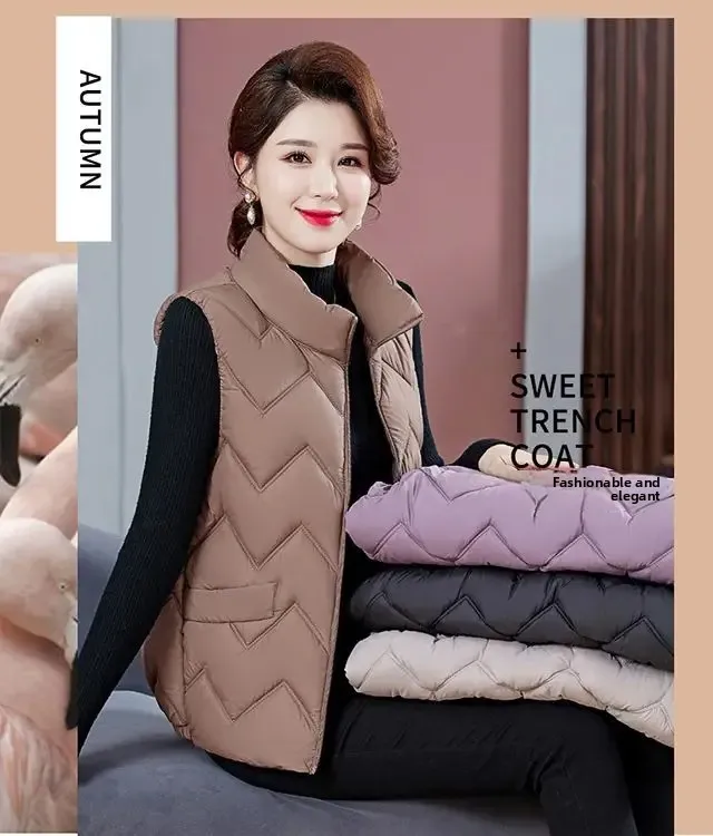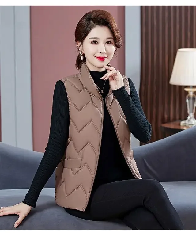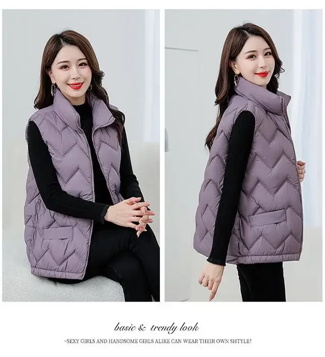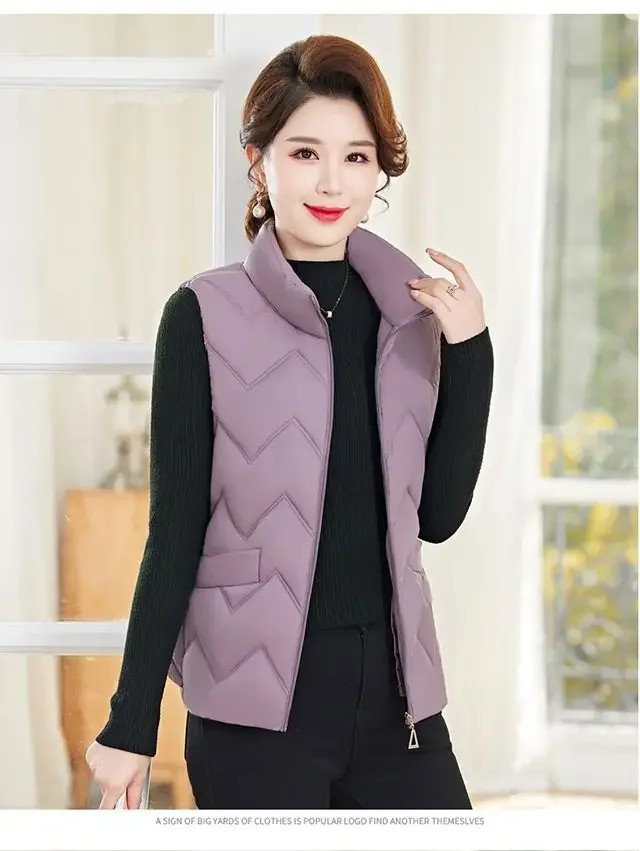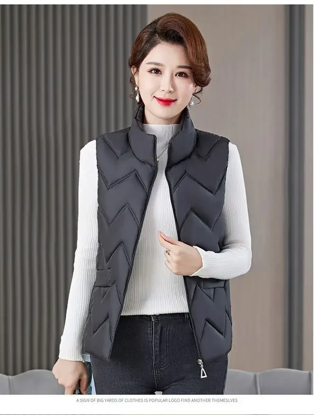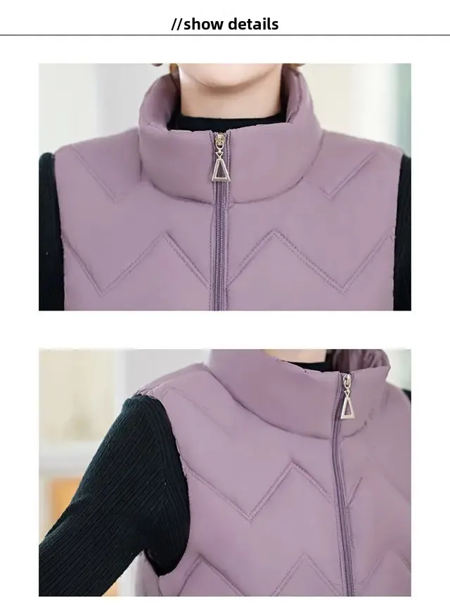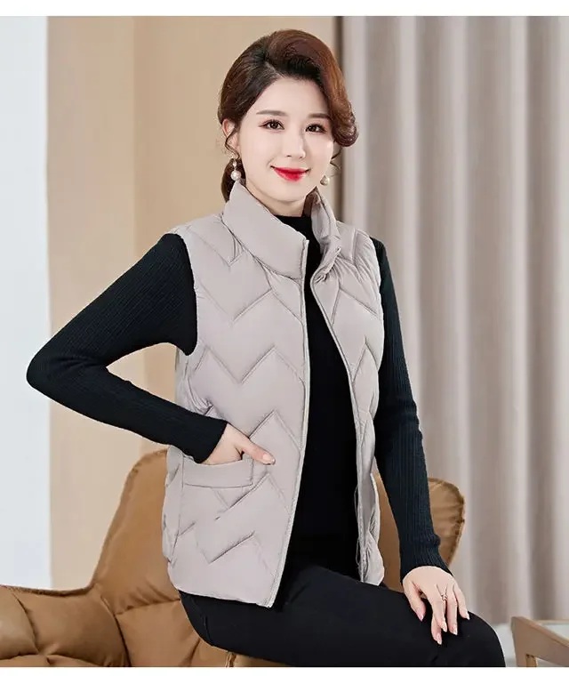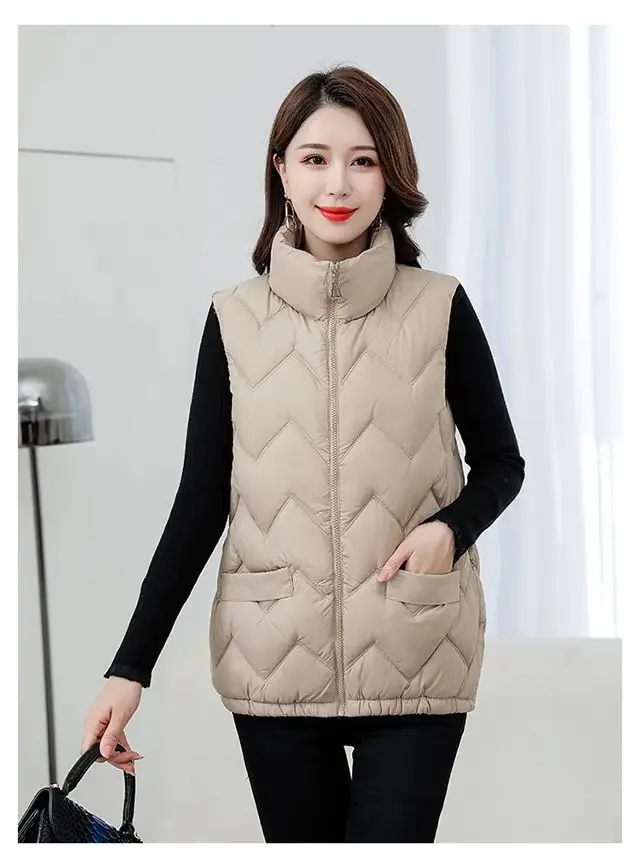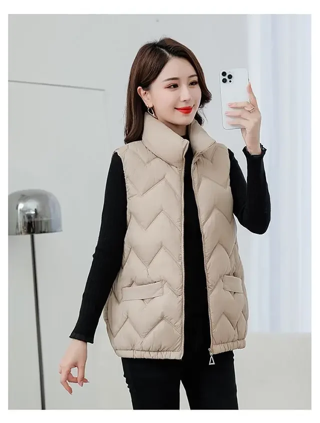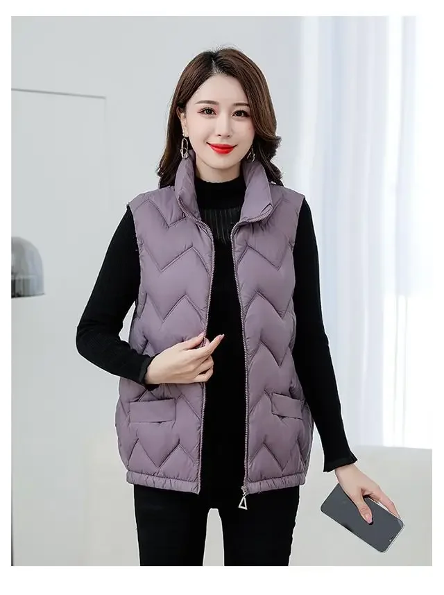 Women’s Fashionable Lightweight down Cotton Vest Autumn Winter Casual Style Sleeveless Pure Color