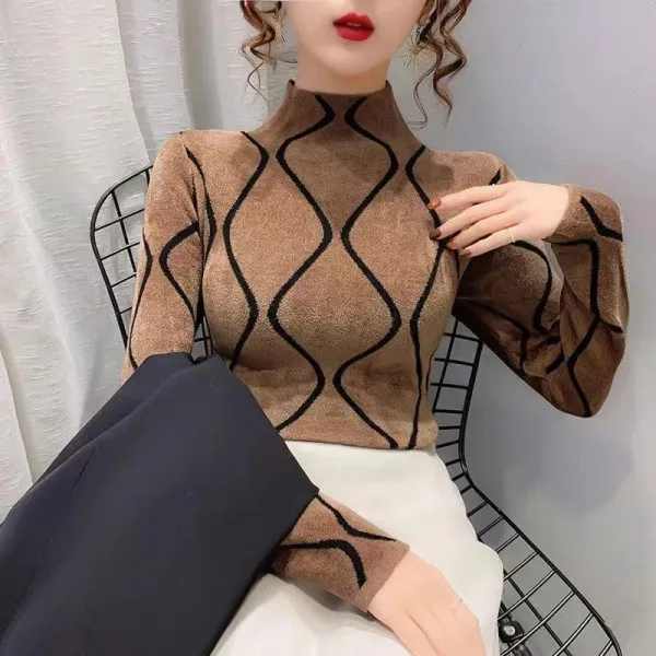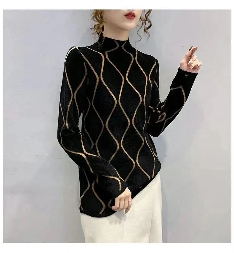 The high neck design of this t-shirt offers a stylish and chic look, perfect for the autumn season.