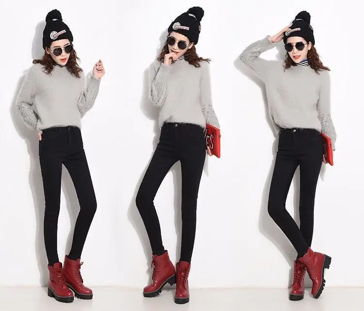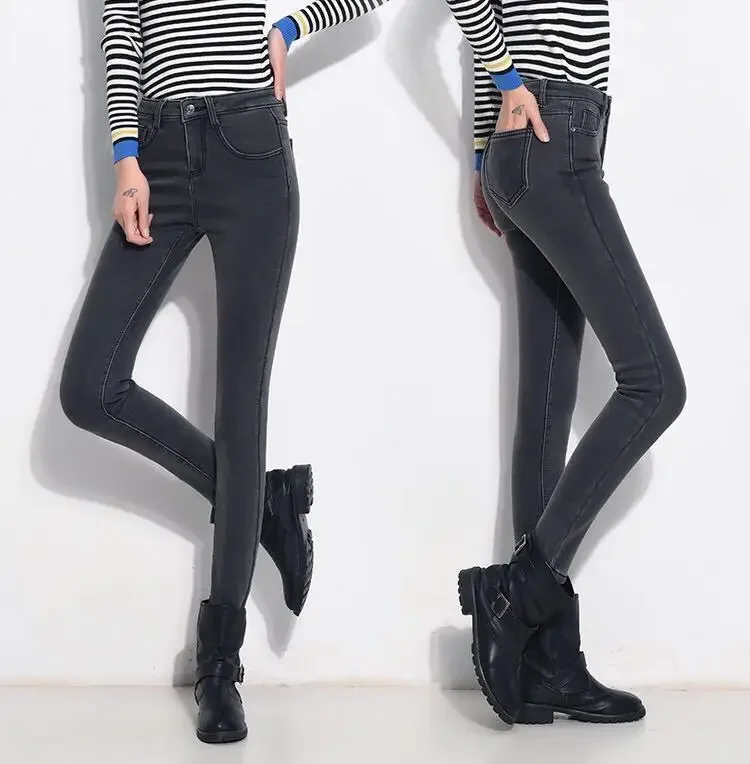 Skinny Women's Stretch Jeans Slim Fashion Korean Pencil Pants Autumn Vintage Black Gray Blue Washed Mom Jeans Leggings