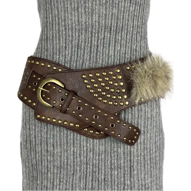 Faionable Wide Fringed Waist Seal American Sle Hot Girl Y2K Decorative Belt Retro Leather Curtain Decoration Accory