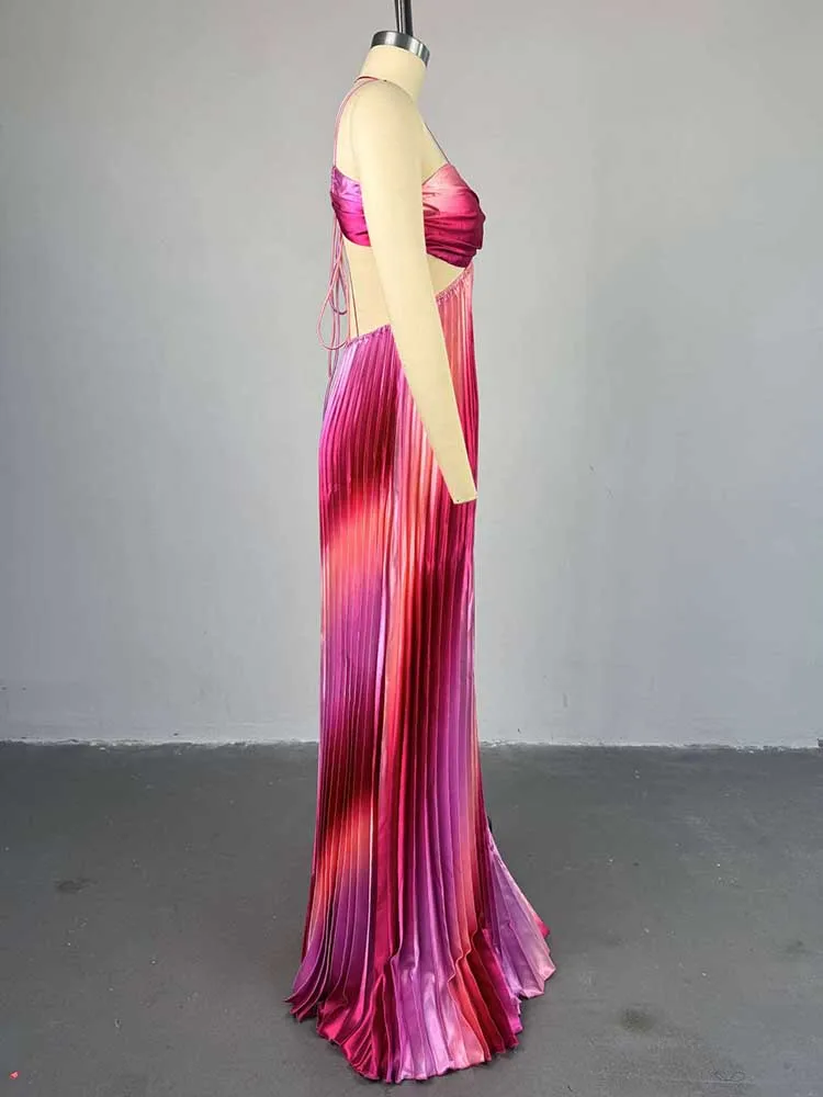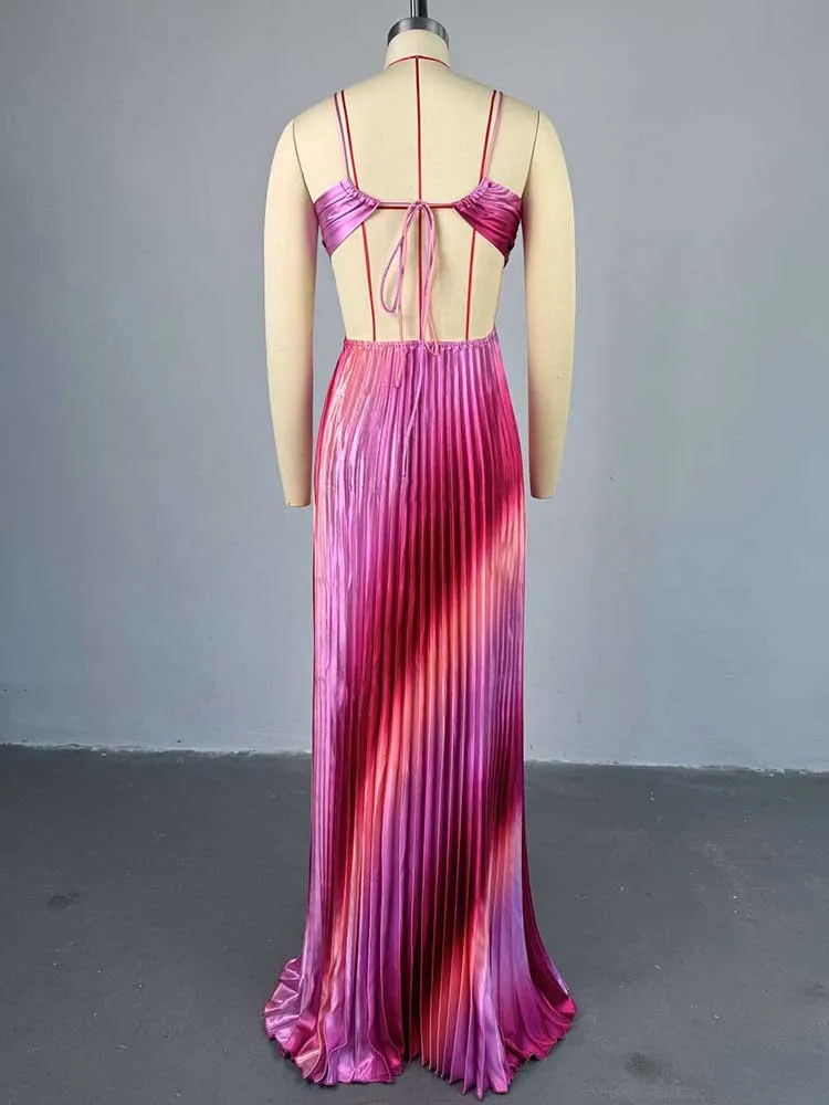 Women’s Halter Top Prom Dresses Pleated Elegant Pink Maxi Dress Backless Maxi Summer Dress Evening Wear Sexy Outfit