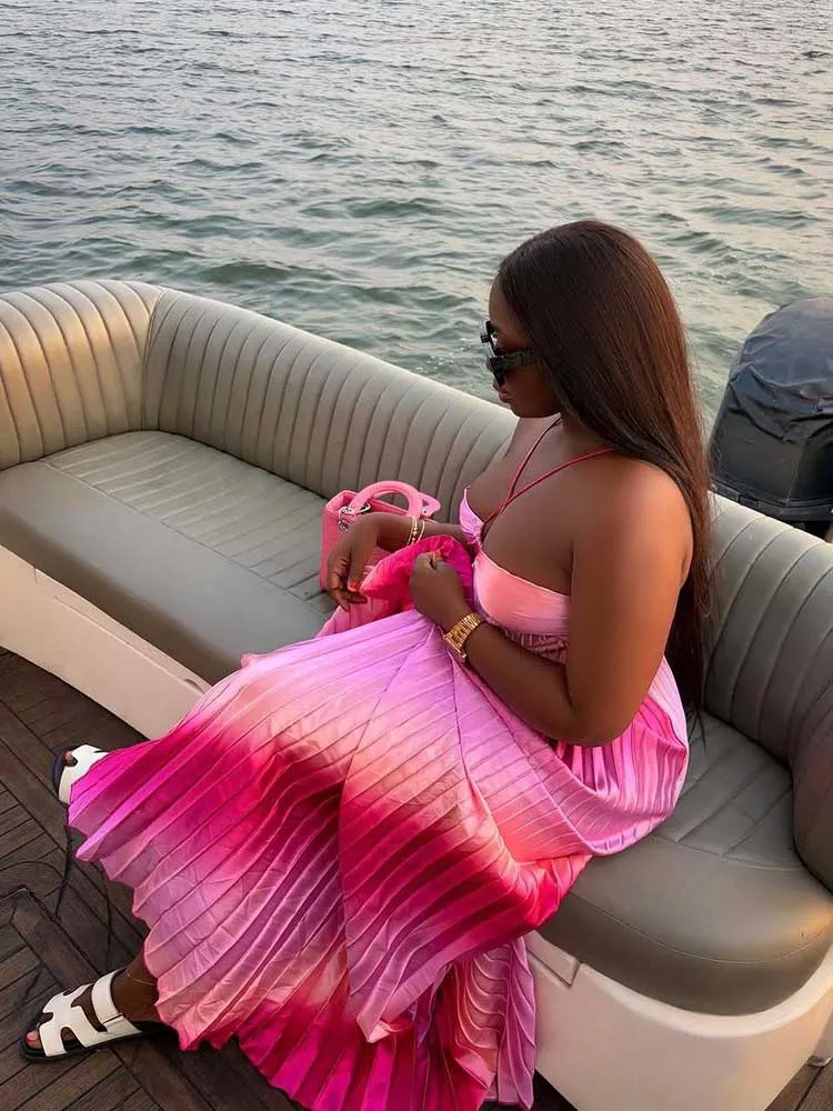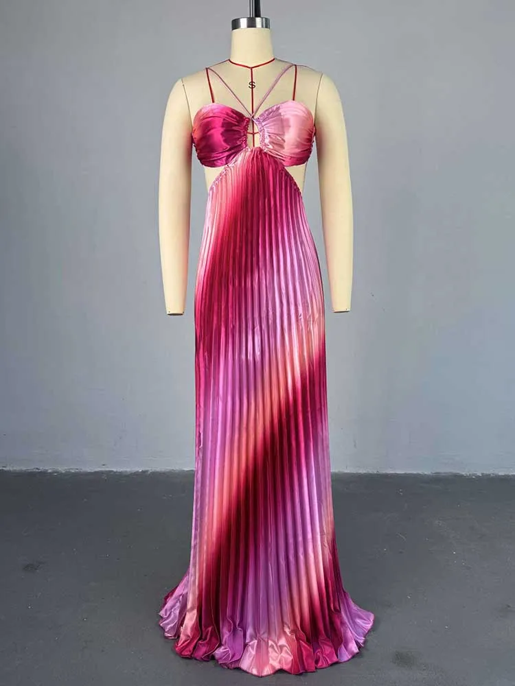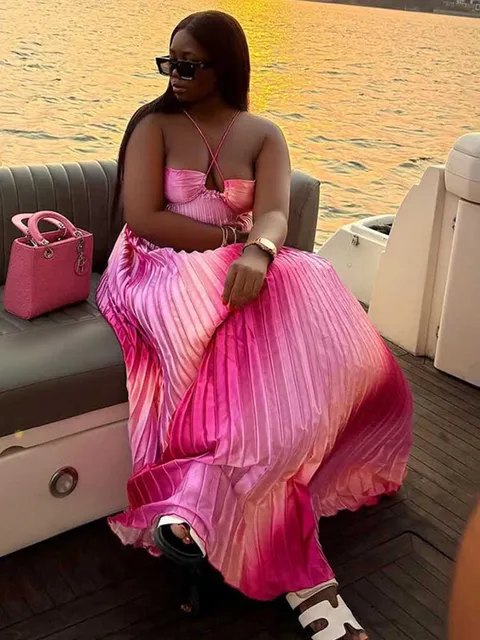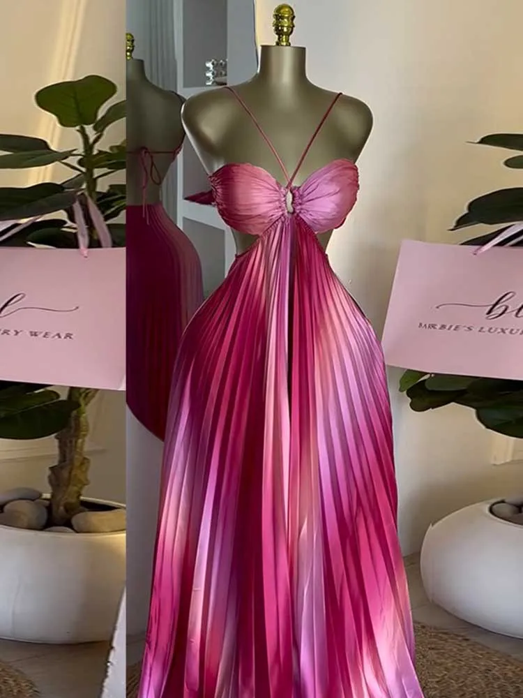 -50%Women’s Halter Top Prom Dresses Pleated Elegant Pink Maxi Dress Backless Maxi Summer Dress Evening Wear Sexy Outfit