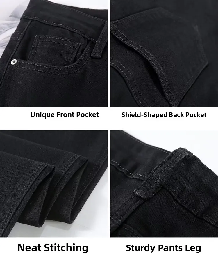 With their elastic fabric, these jeans provide a snug fit that moves with you, ensuring both comfort and style.