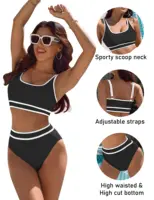 【Features】This high waisted swimsuit is designed with sporty crop top,high cut bikini bottom,adjustable straps, scoop neck,removable padding.The cheeky high waisted bikini bottom with enough coverage play a role of tummy control while show your charming body and lengthening legs.