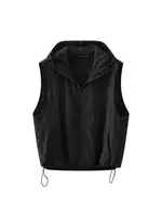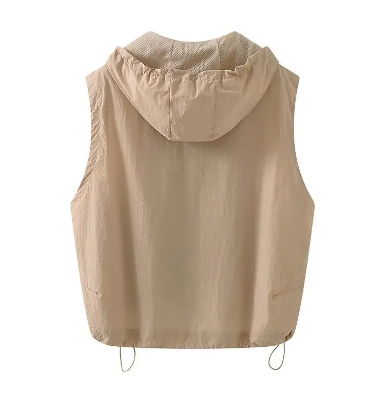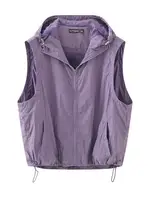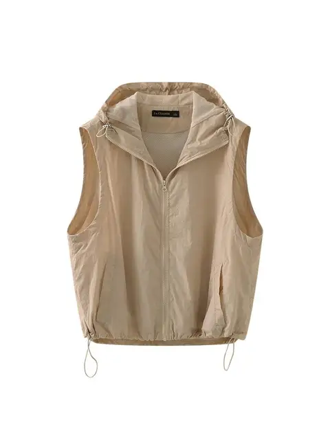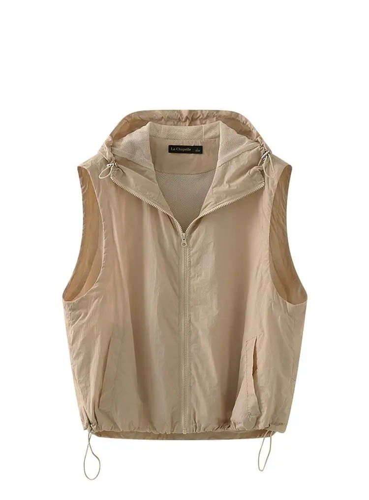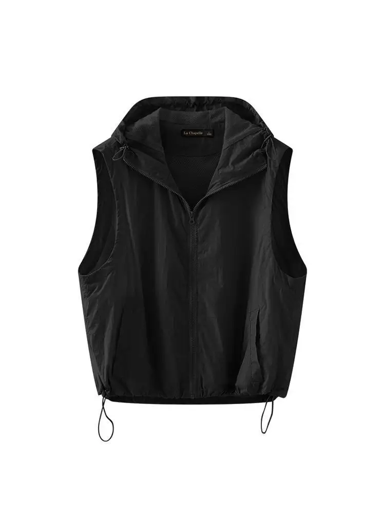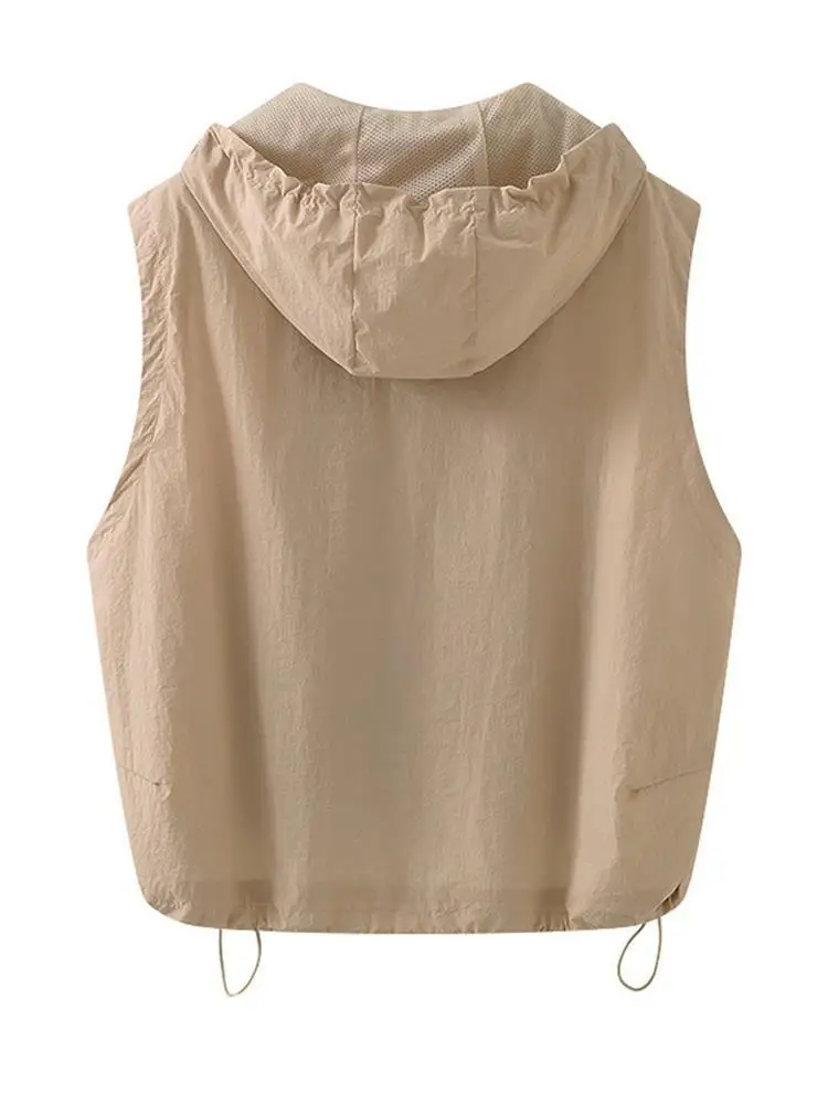 This hooded vest features a versatile design, perfect for various occasions. Its casual style and zip closure make it a staple in any wardrobe.