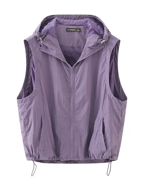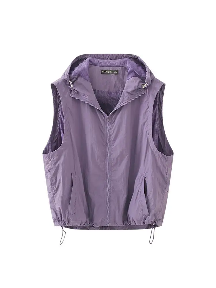Designed for summer, this vest offers sun protection, making it an essential piece for sunny days.