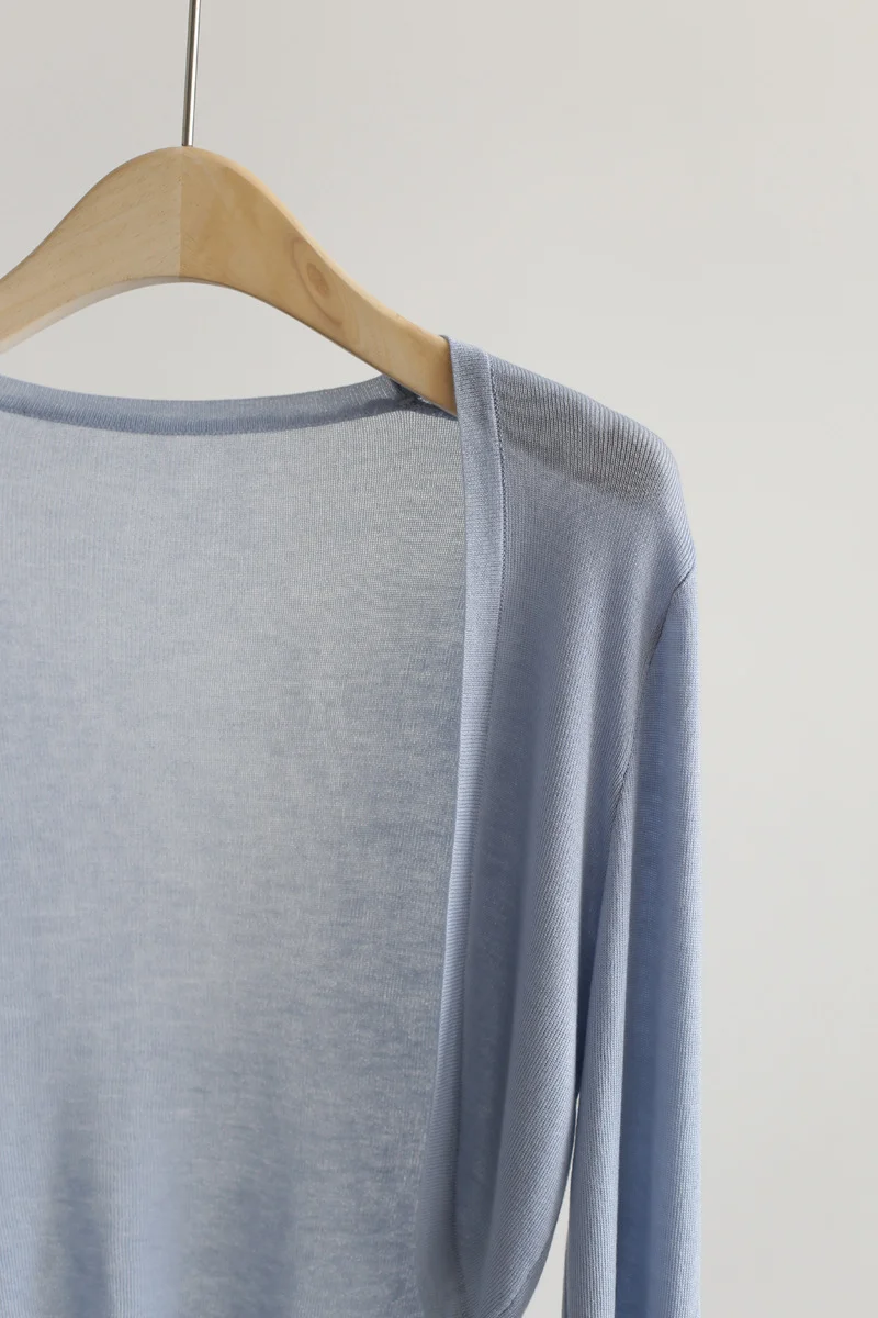 This ice silk sunscreen cardigan is designed to be lightweight, making it perfect for summer wear. Its thin outer layer provides a cool and comfortable feel.