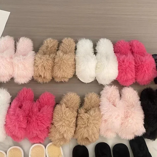 Women’s Indoor Slippers 2024 Spring and summer New Plush Home Lazy Slippers Anti slip Durable Fashion