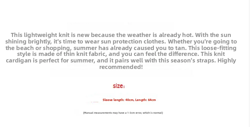 Designed with sun protection in mind, this cardigan shields you from harmful UV rays, making it an essential addition to your summer wardrobe.
