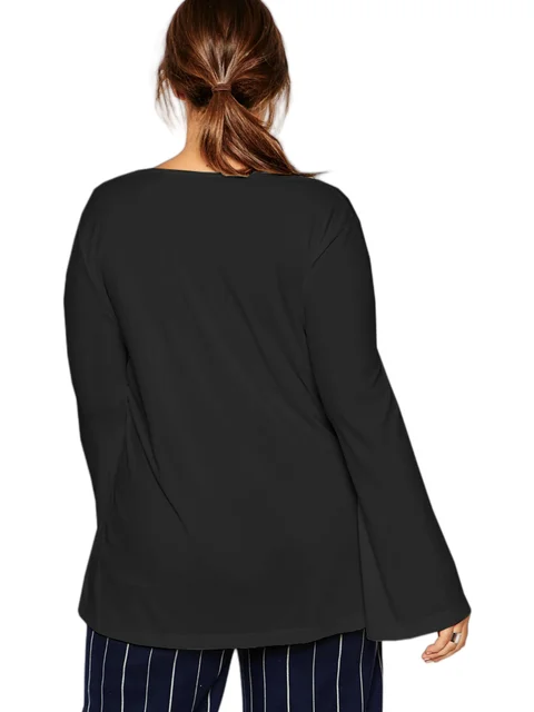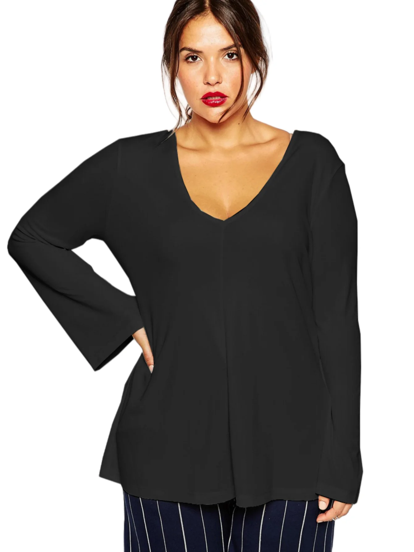 Details:Sexy V-neck,Long Flare Sleeve,Swing Style