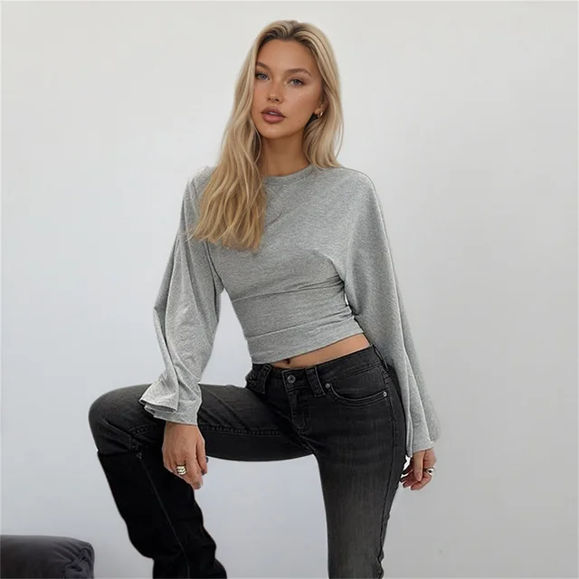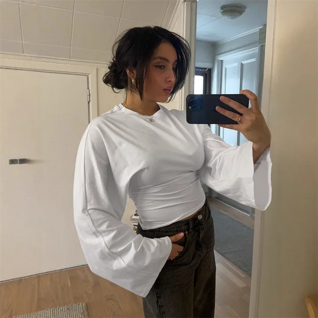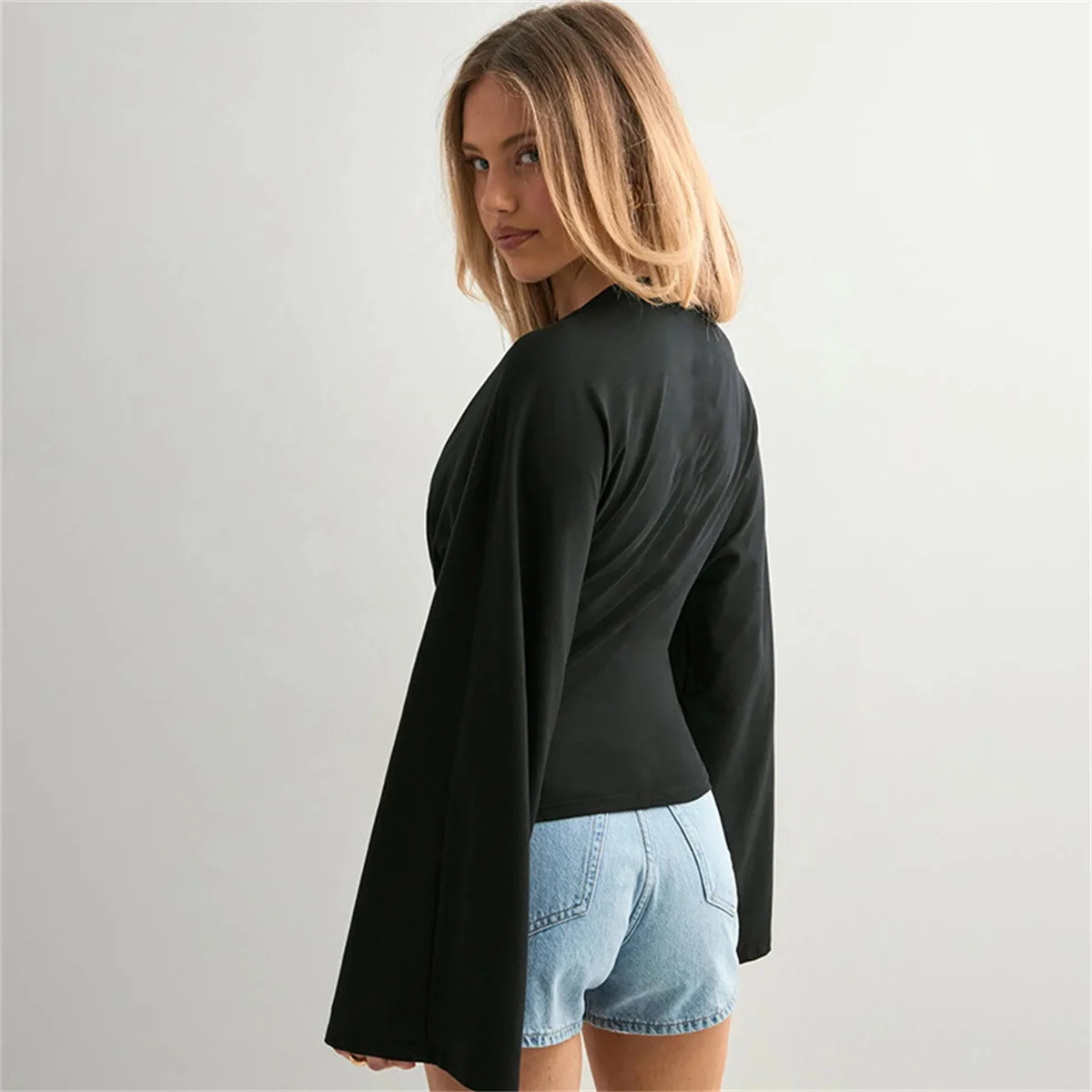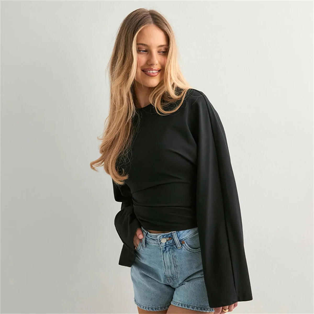 Slim Fit One Shoulder T-Shirt Women Summer Design Bell Sleeve Chop Neck plus Size Versatile Sexy Top Pure Desire AE Stock