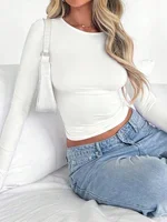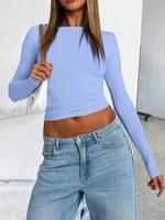 Womens Long Sleeve Shirts Basic Spring Crop Tops Fall Fashion Layering Slim Fitted Y2k Tops
