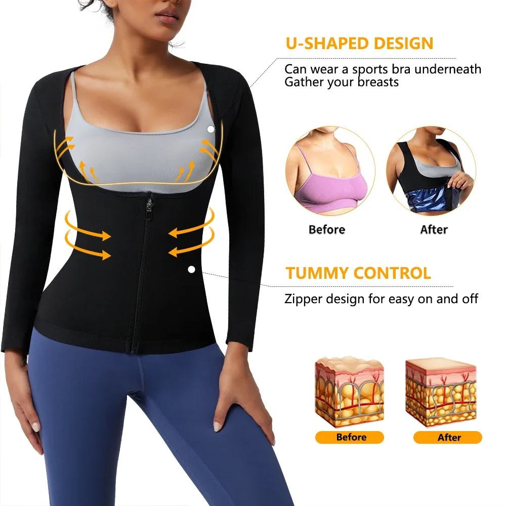 Advanced Thermo Fabric: Made from premium heat-trapping material that is lightweight and soft, it promotes sweating without skin irritation. The outer compression fabric instantly slims and shapes your upper body.