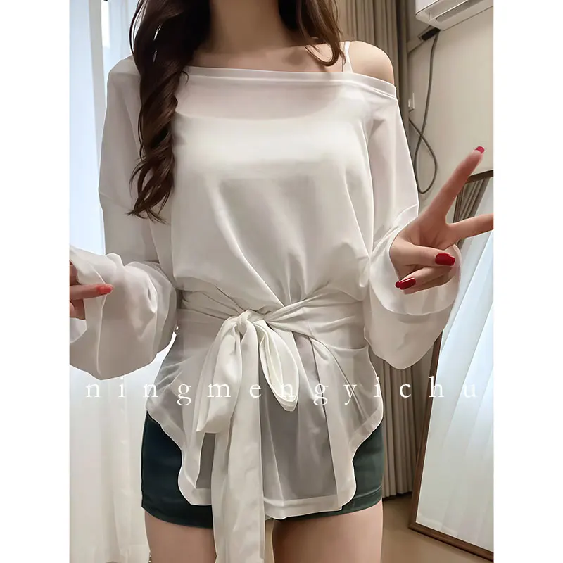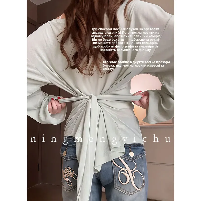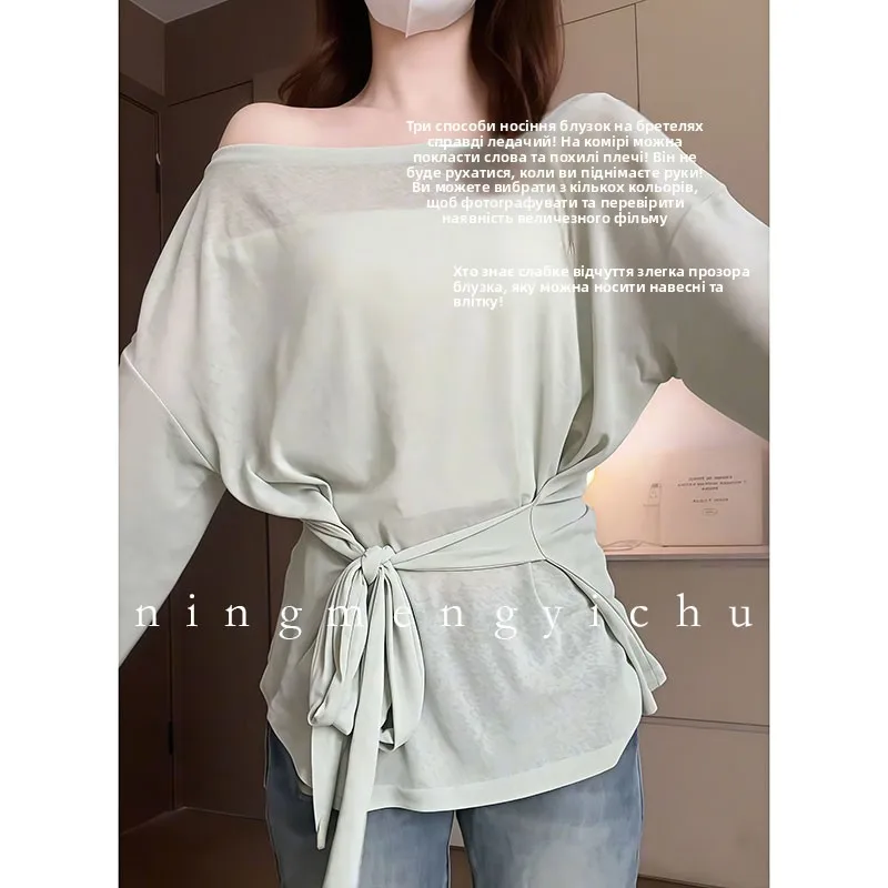 This T-shirt features a French knot waist design, adding a touch of elegance and femininity to your summer wardrobe.