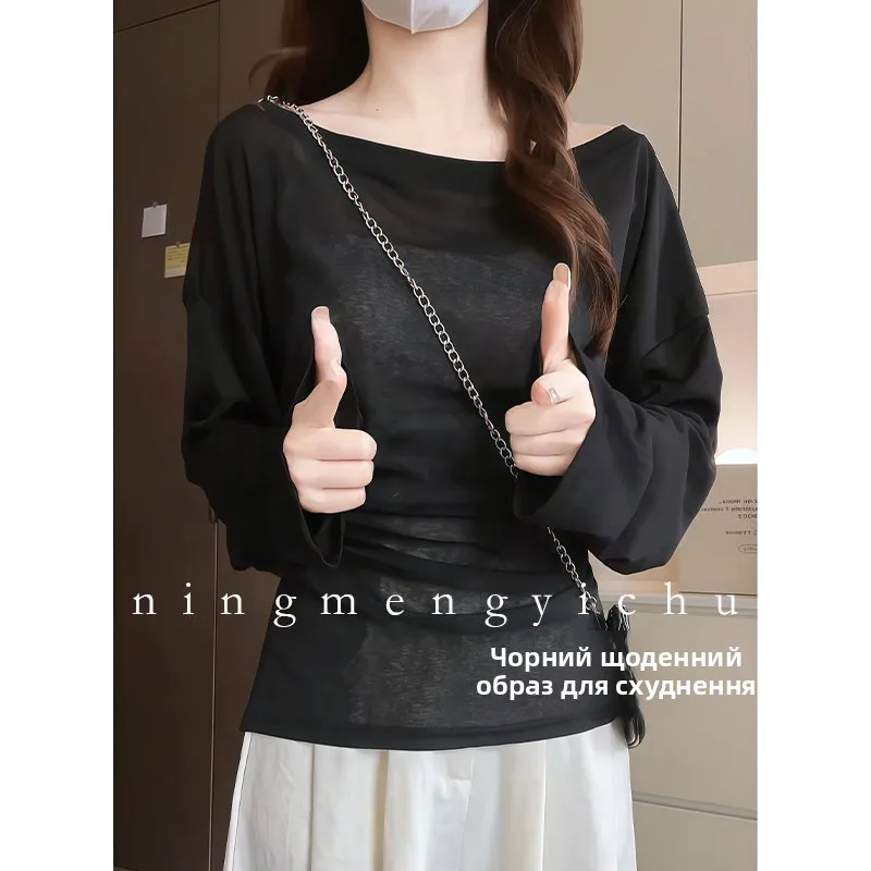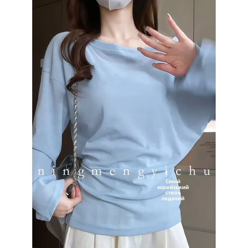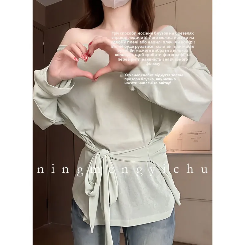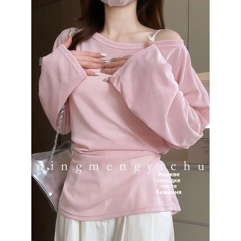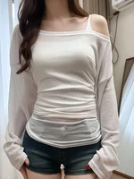 The loose fit and shoulder baring design make this T-shirt perfect for a casual summer day, offering both comfort and style.