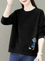 Women's Loose Long Sve Cotton T-irt Korean Sle Spring Autumn New Faion Slimming Print Casual round Ne Top