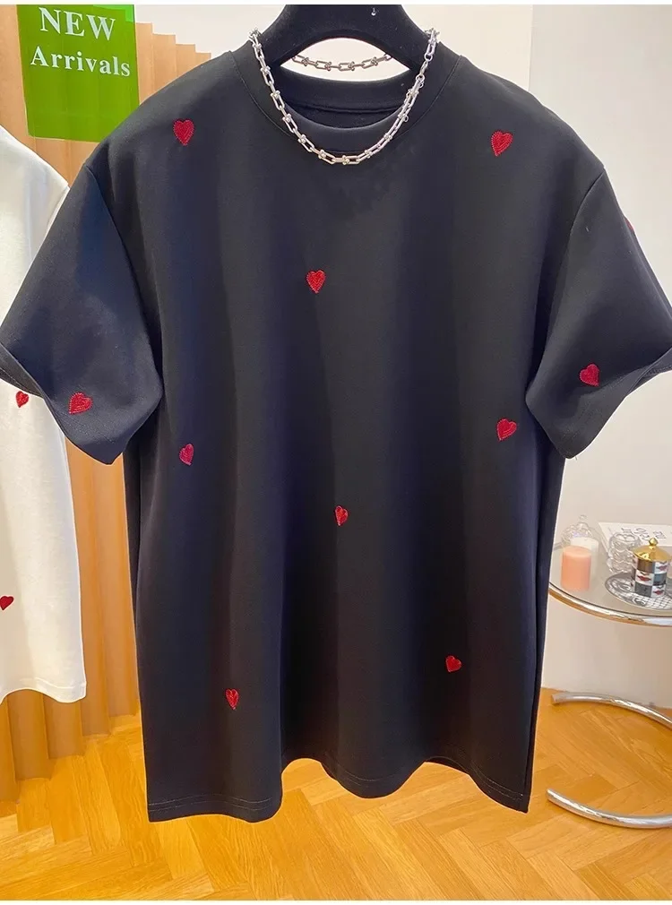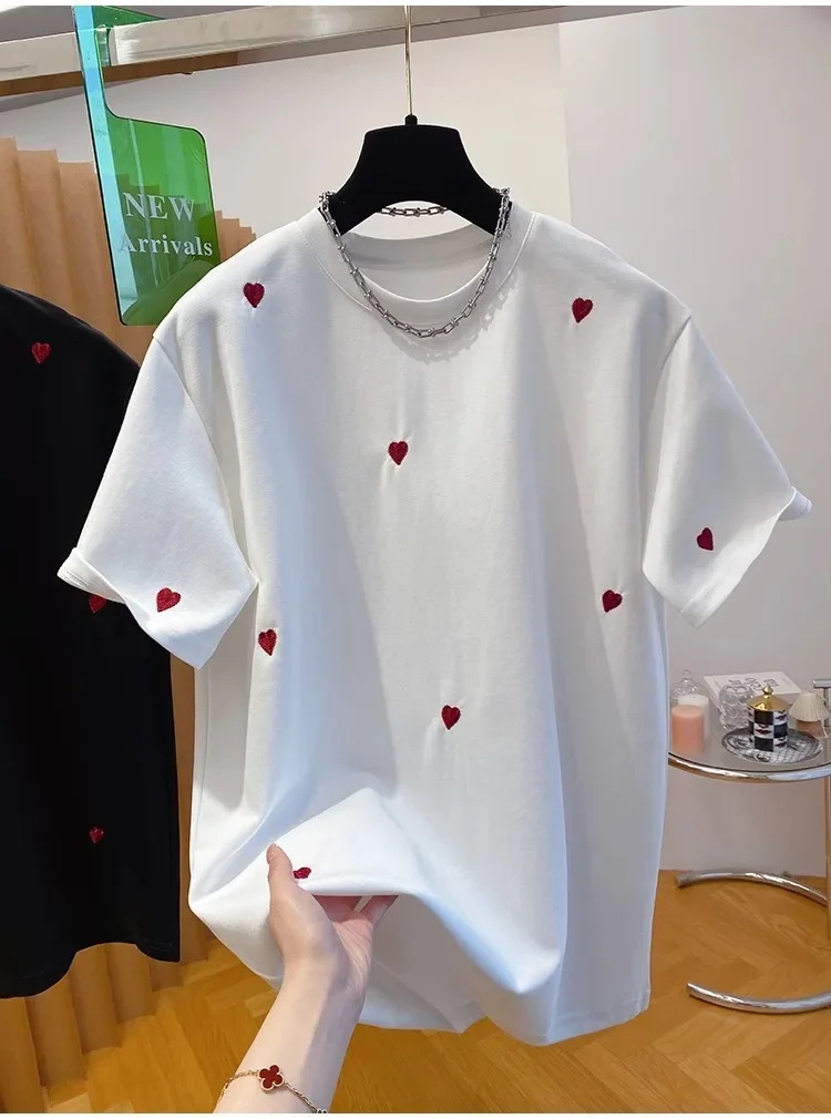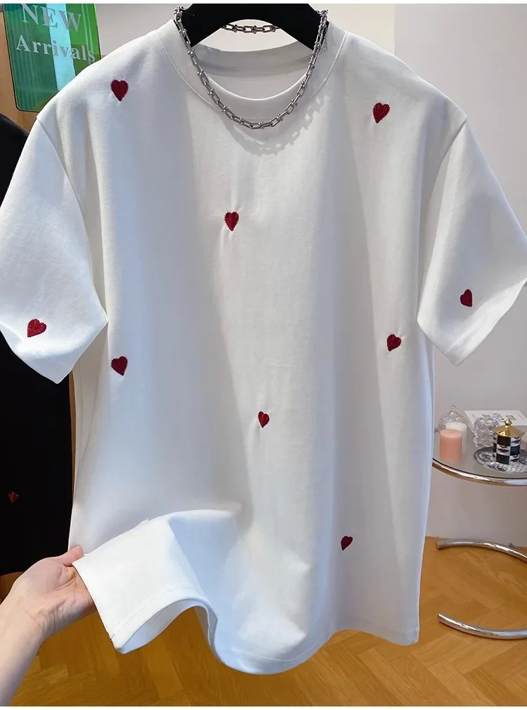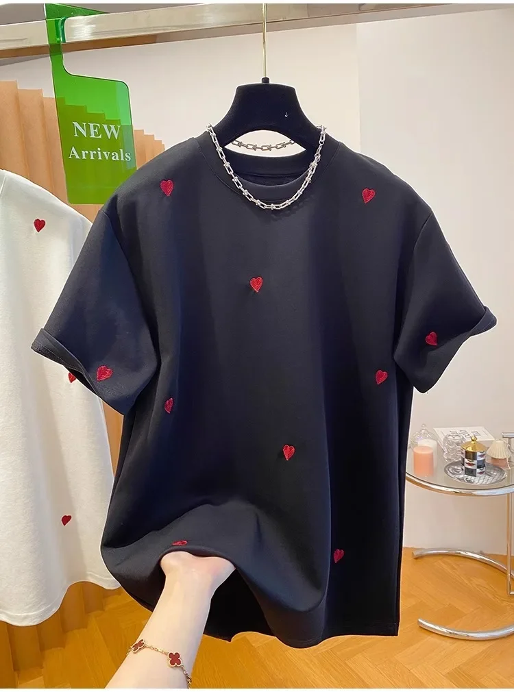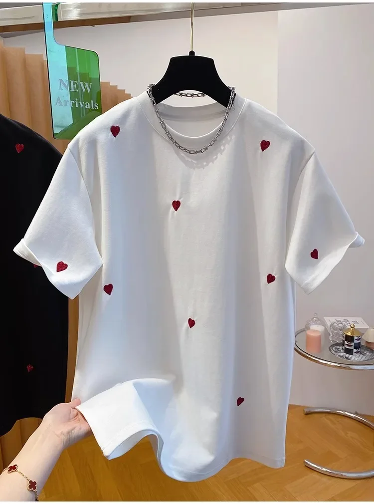 • European Design : Inspired by European fashion trends, this T-shirt features a love embroidery design, adding a touch of elegance.