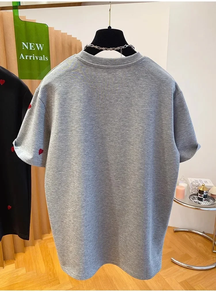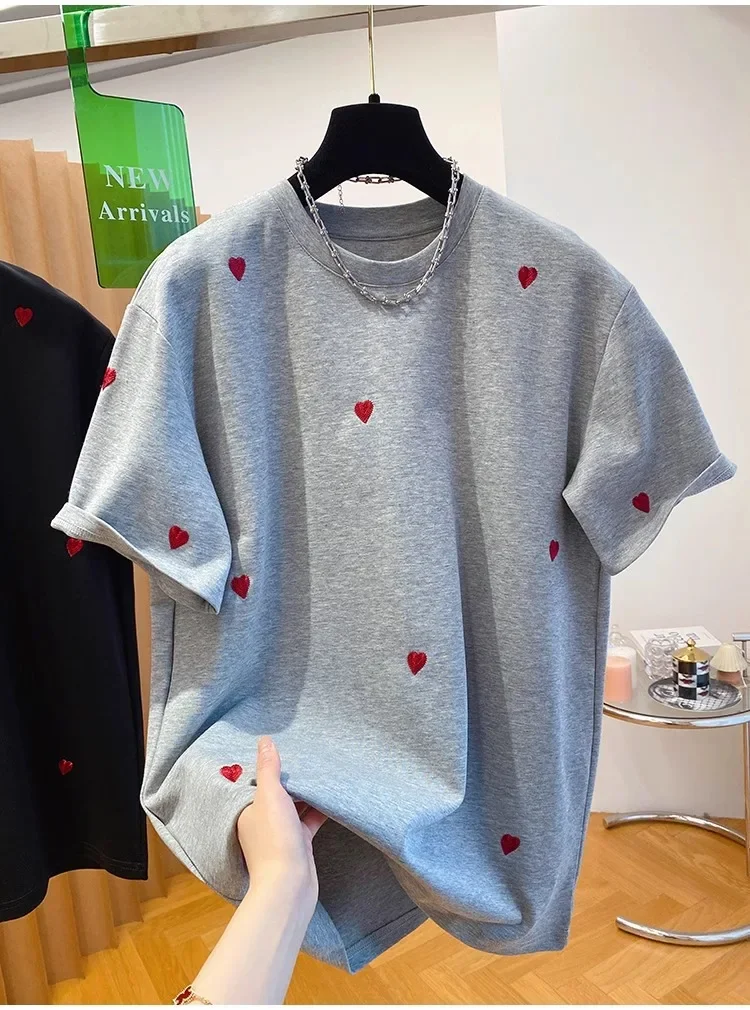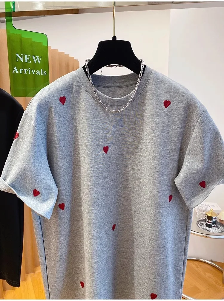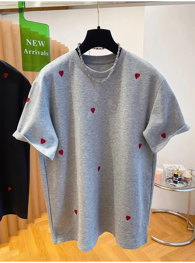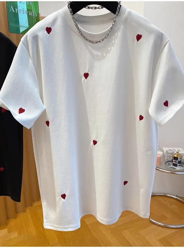 • European Design : Inspired by European fashion trends, this T-shirt features a love embroidery design, adding a touch of elegance.