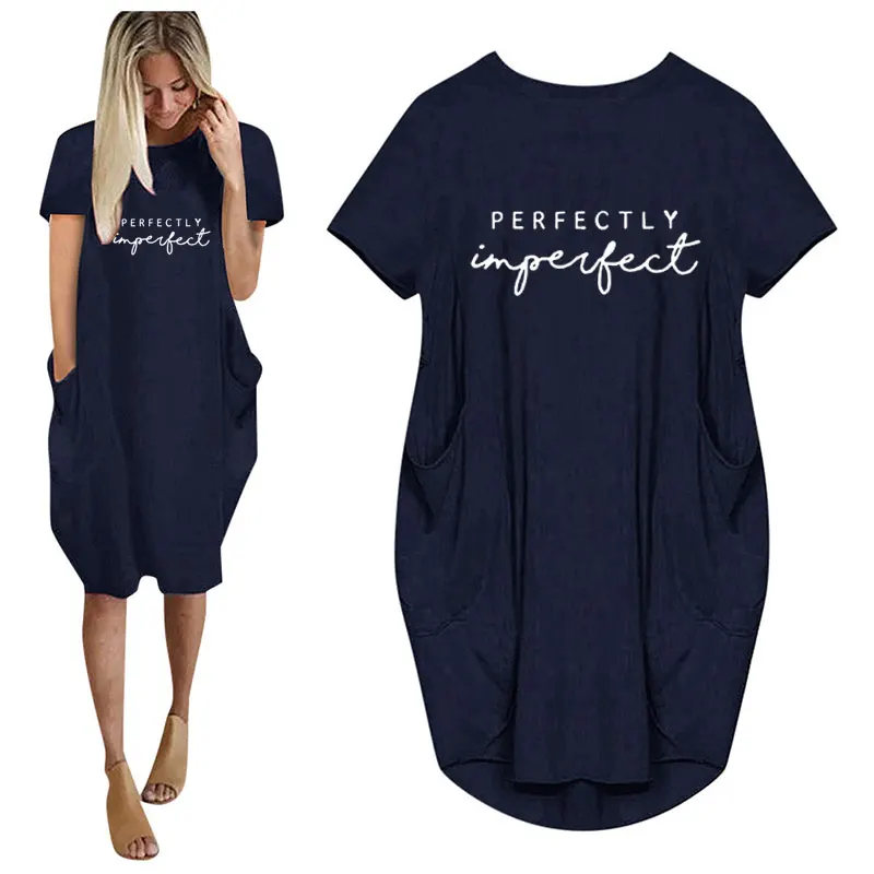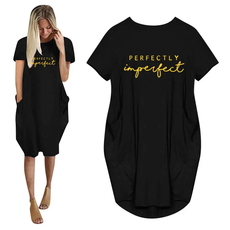 Women’s Loose Short Sleeved Summer Plus Size Dress Pocket T-shirt Style Mini Dresses Summer Casual