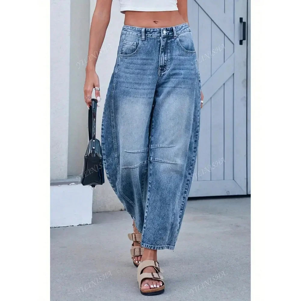 Women’s Loose Straight Leg Jeans Mid Waist Washed Wide Leg Drapey Long Trousers Summer New Arrival