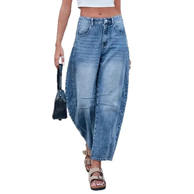 Women's Loose Straight Leg Jeans Mid Waist Washed Wide Leg Drapey Long Trousers Summer New Arrival European Style