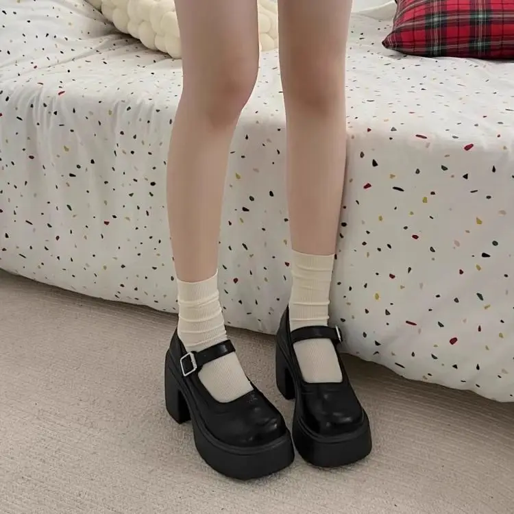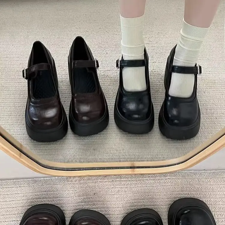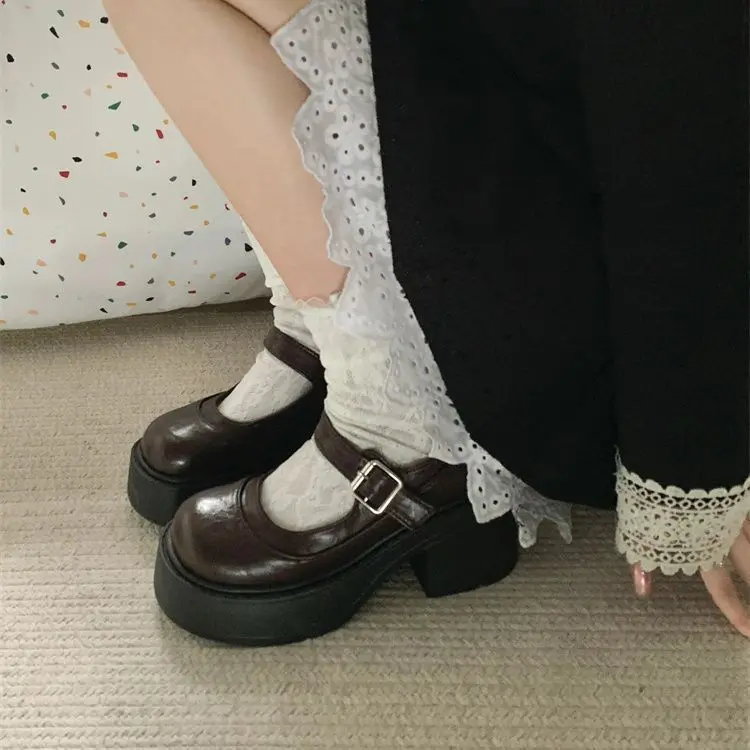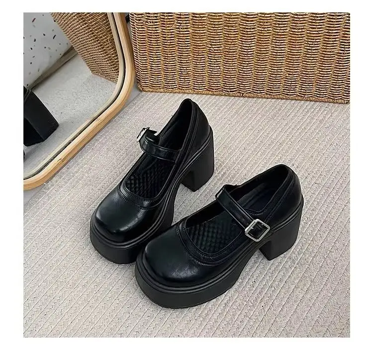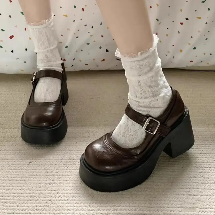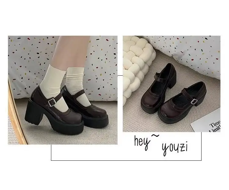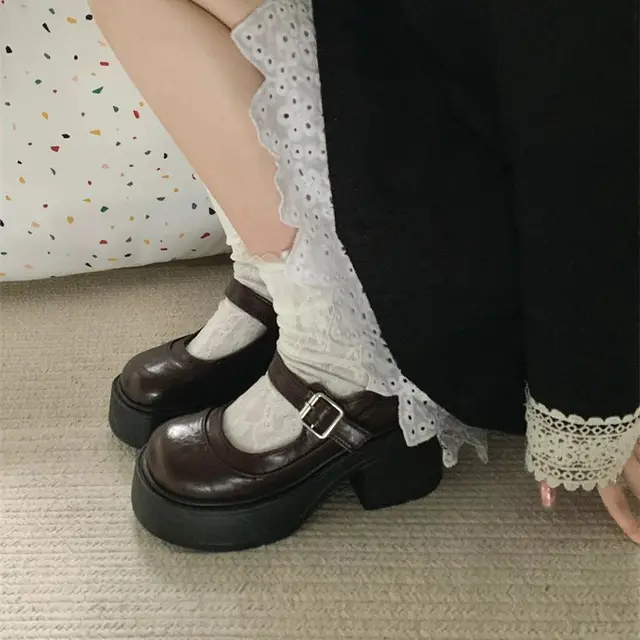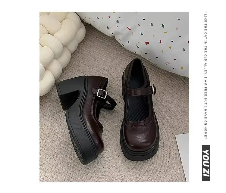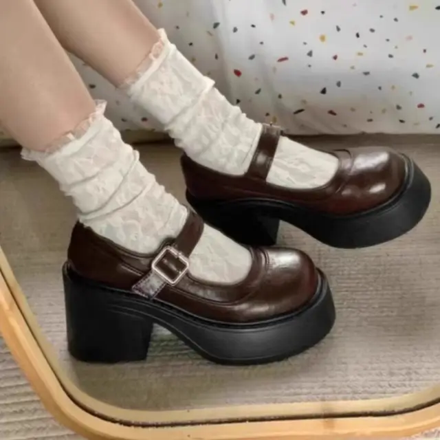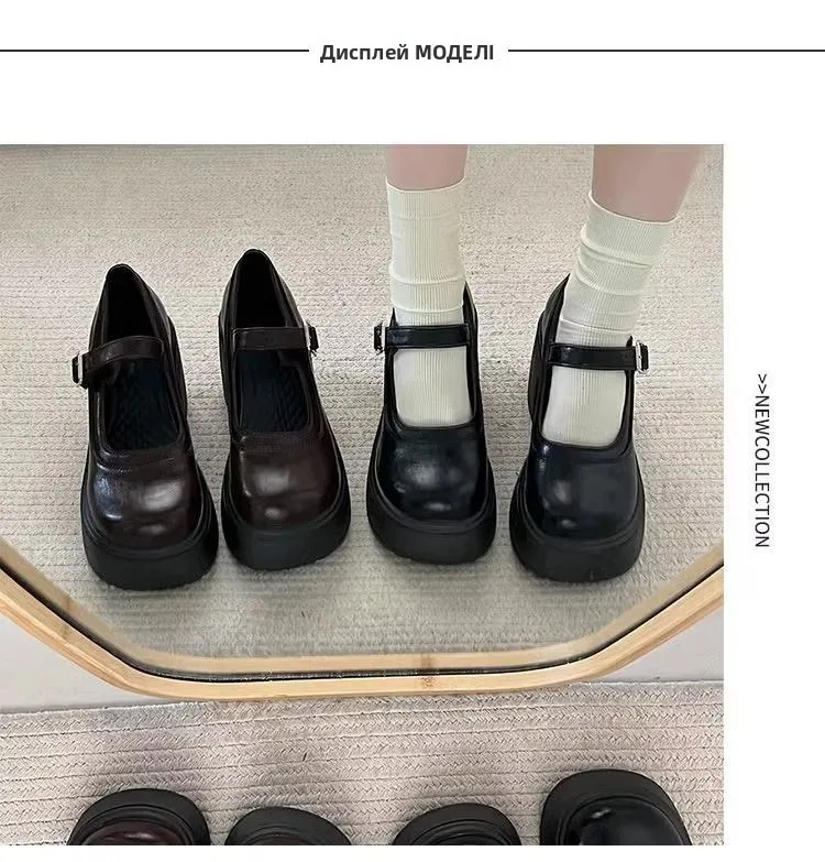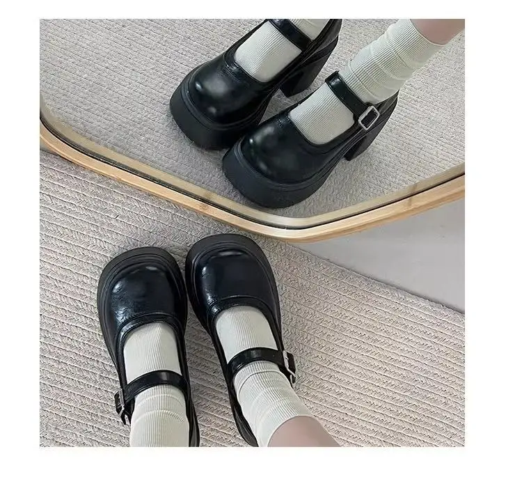 Elevate your style with these Mary Jane shoes featuring a French thick heel for a chic and fashionable look.
